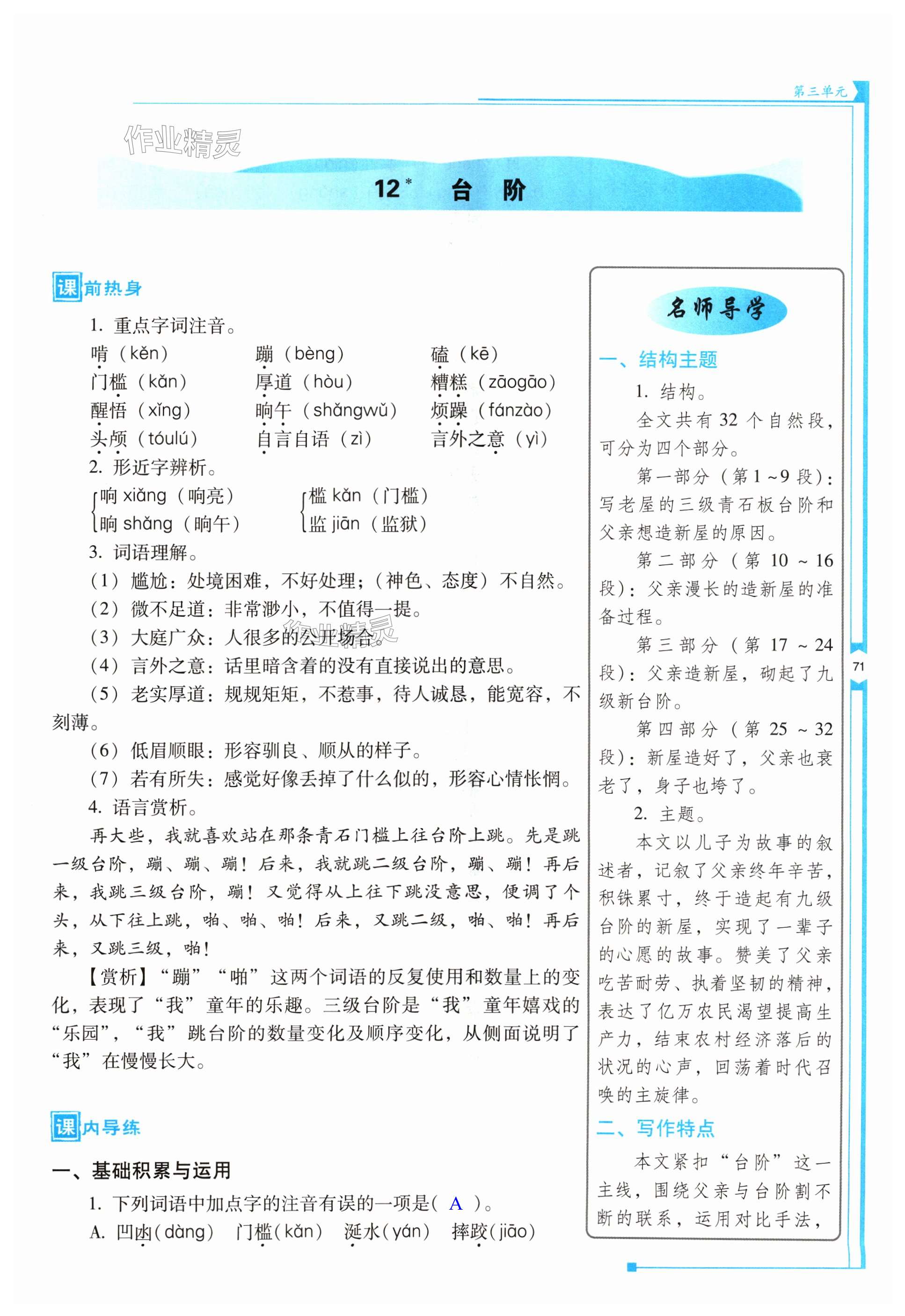 注:目前有些书本章节名称可能整理的还不是很完善,但都是按照顺序排列的,请同学们按照顺序仔细查找。练习册 2024年云南省标准教辅优佳学案七年级语文下册人教版 答案主要是用来给同学们做完题方便对答案用的,请勿直接抄袭。