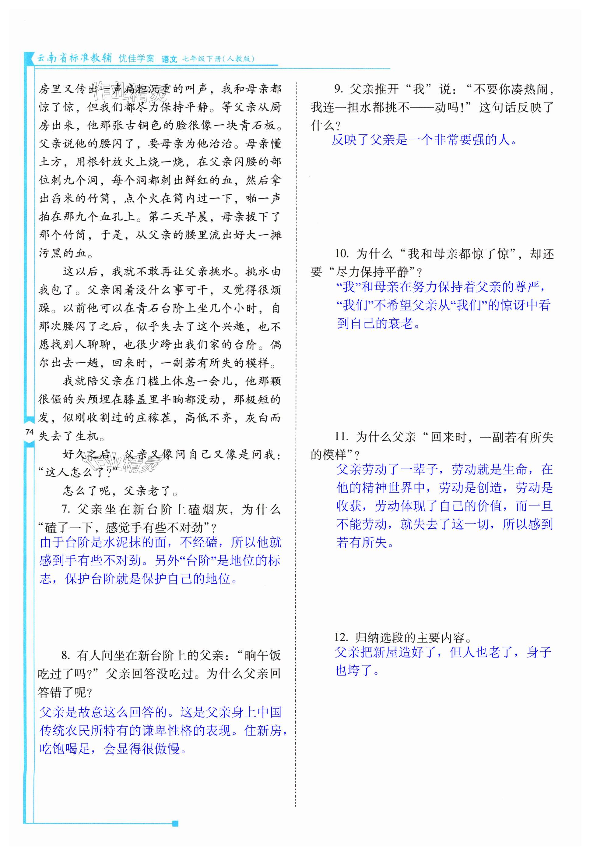 注:目前有些书本章节名称可能整理的还不是很完善,但都是按照顺序排列的,请同学们按照顺序仔细查找。练习册 2024年云南省标准教辅优佳学案七年级语文下册人教版 答案主要是用来给同学们做完题方便对答案用的,请勿直接抄袭。