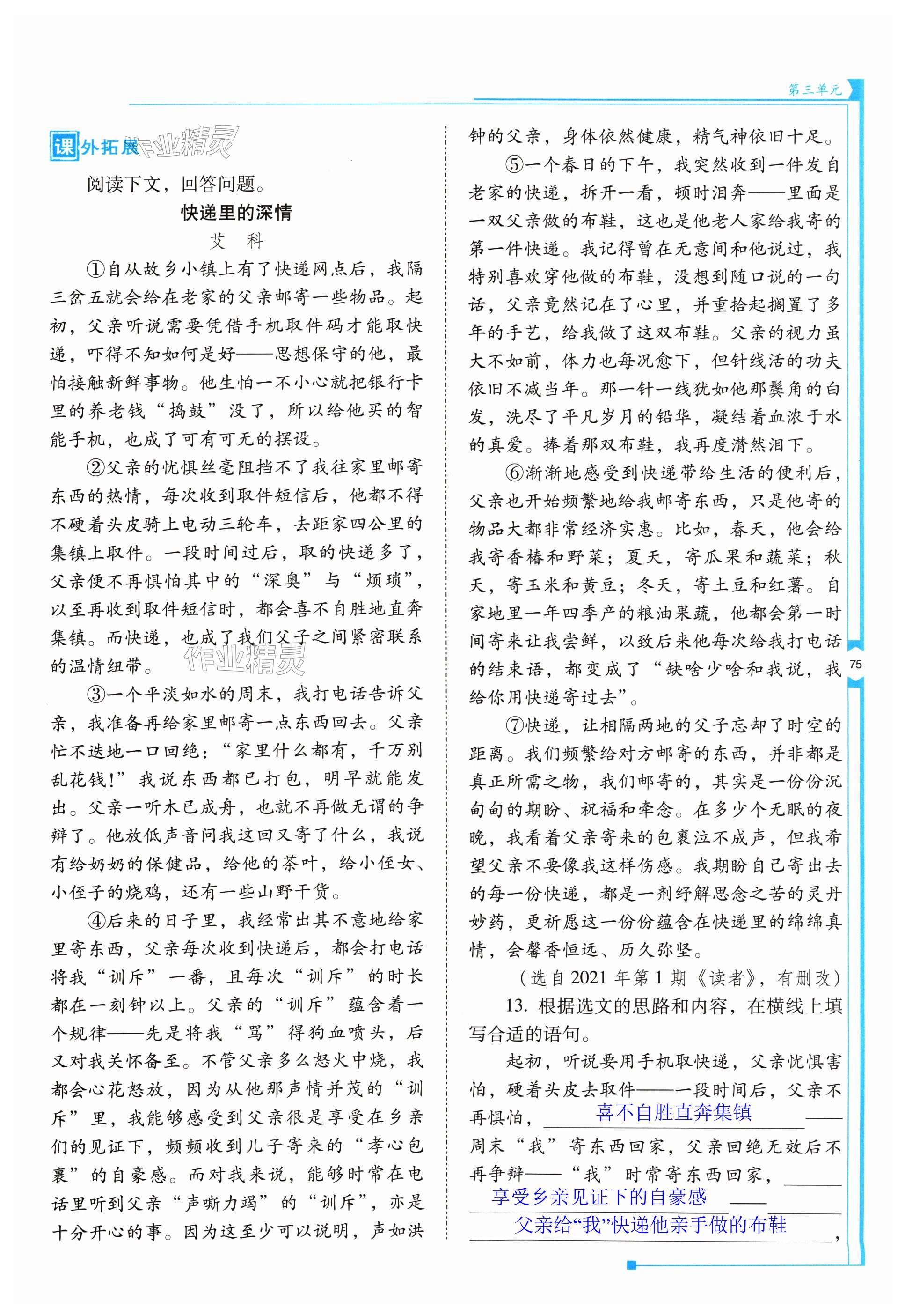 注:目前有些书本章节名称可能整理的还不是很完善,但都是按照顺序排列的,请同学们按照顺序仔细查找。练习册 2024年云南省标准教辅优佳学案七年级语文下册人教版 答案主要是用来给同学们做完题方便对答案用的,请勿直接抄袭。