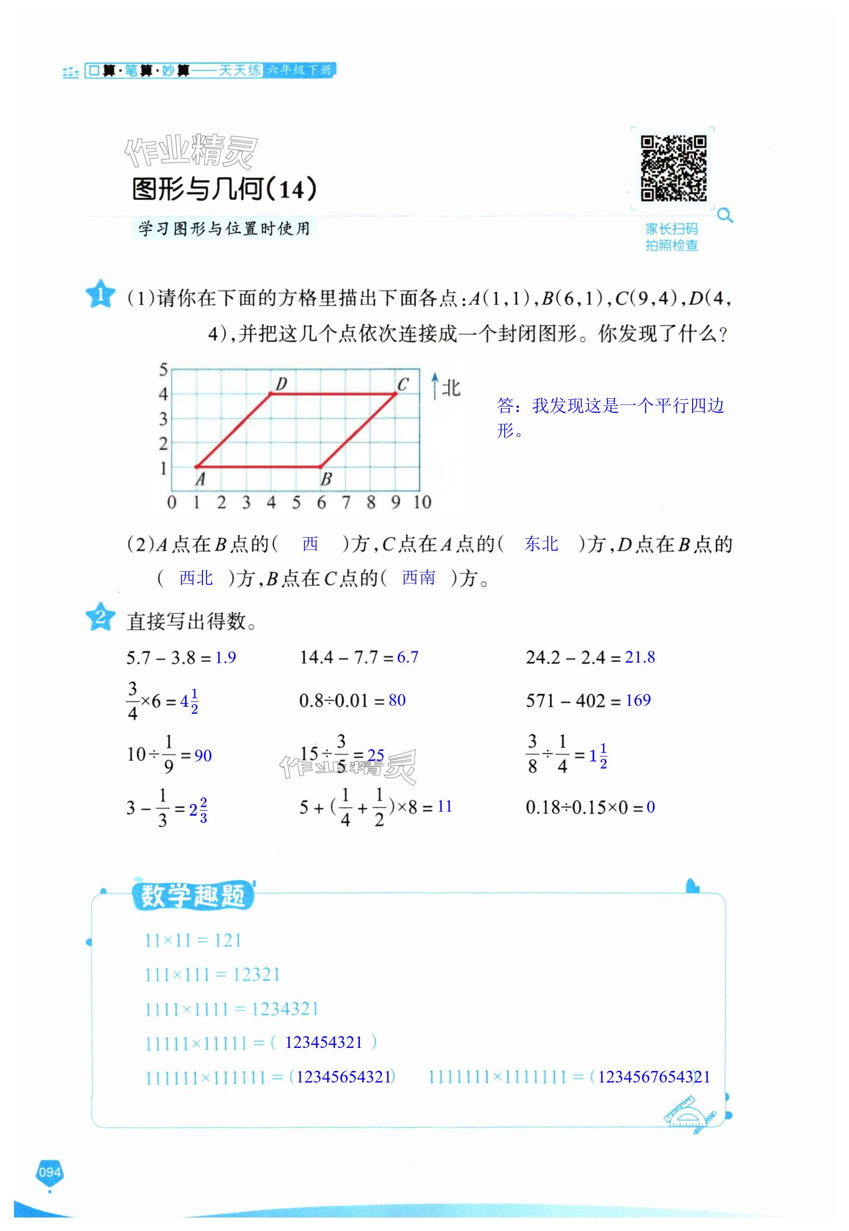 注:目前有些书本章节名称可能整理的还不是很完善,但都是按照顺序排列的,请同学们按照顺序仔细查找。练习册 2024年口算笔算妙算天天练六年级数学下册苏教版 答案主要是用来给同学们做完题方便对答案用的,请勿直接抄袭。