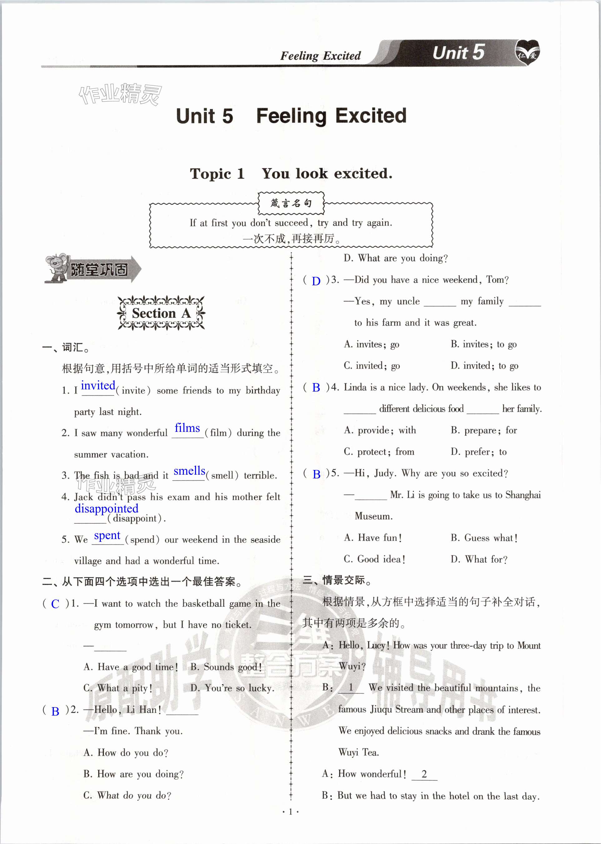 注:目前有些书本章节名称可能整理的还不是很完善,但都是按照顺序排列的,请同学们按照顺序仔细查找。练习册 2024年仁爱英语同步练习册八年级下册仁爱版内蒙古专版 答案主要是用来给同学们做完题方便对答案用的,请勿直接抄袭。