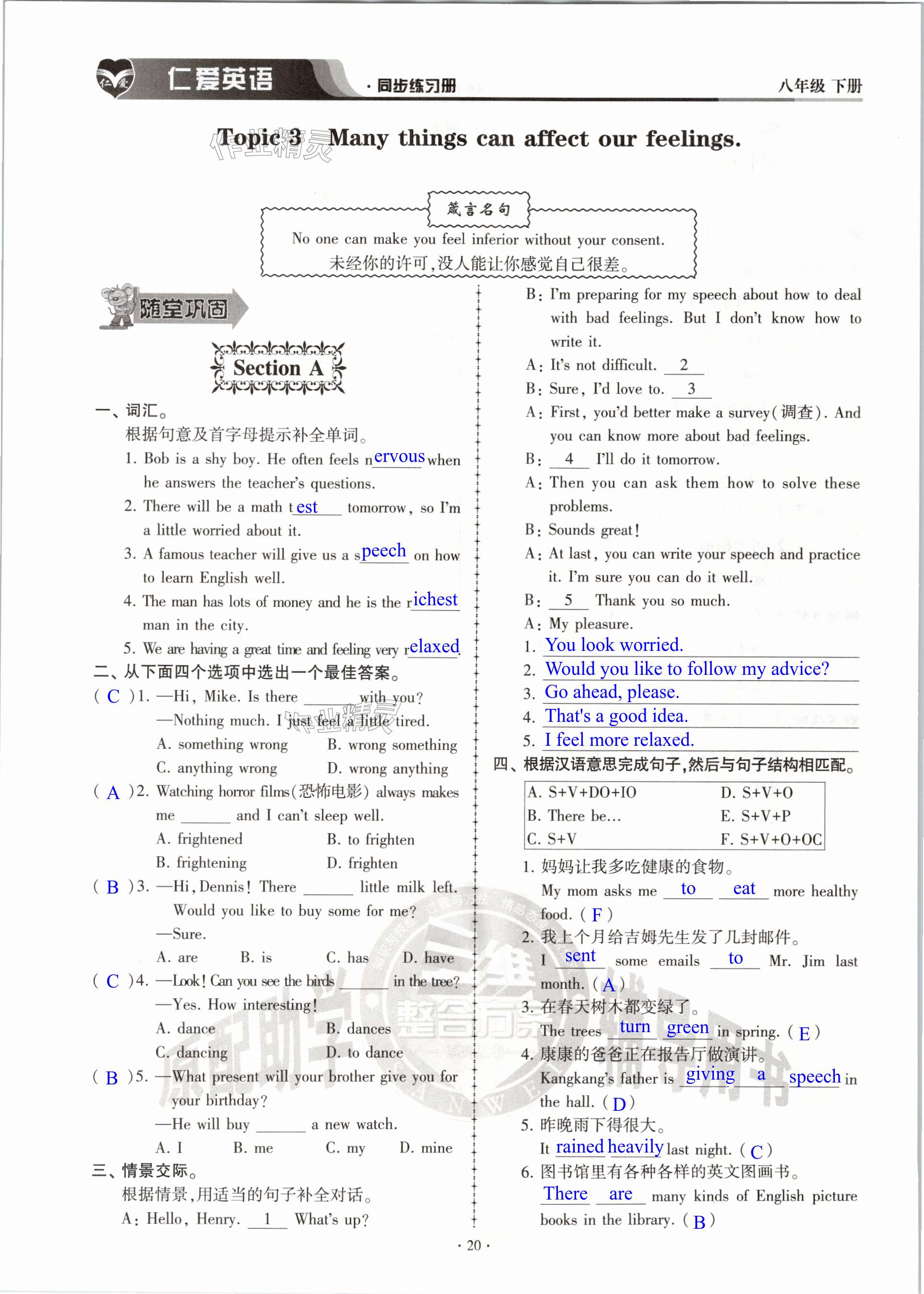 注:目前有些书本章节名称可能整理的还不是很完善,但都是按照顺序排列的,请同学们按照顺序仔细查找。练习册 2024年仁爱英语同步练习册八年级下册仁爱版内蒙古专版 答案主要是用来给同学们做完题方便对答案用的,请勿直接抄袭。