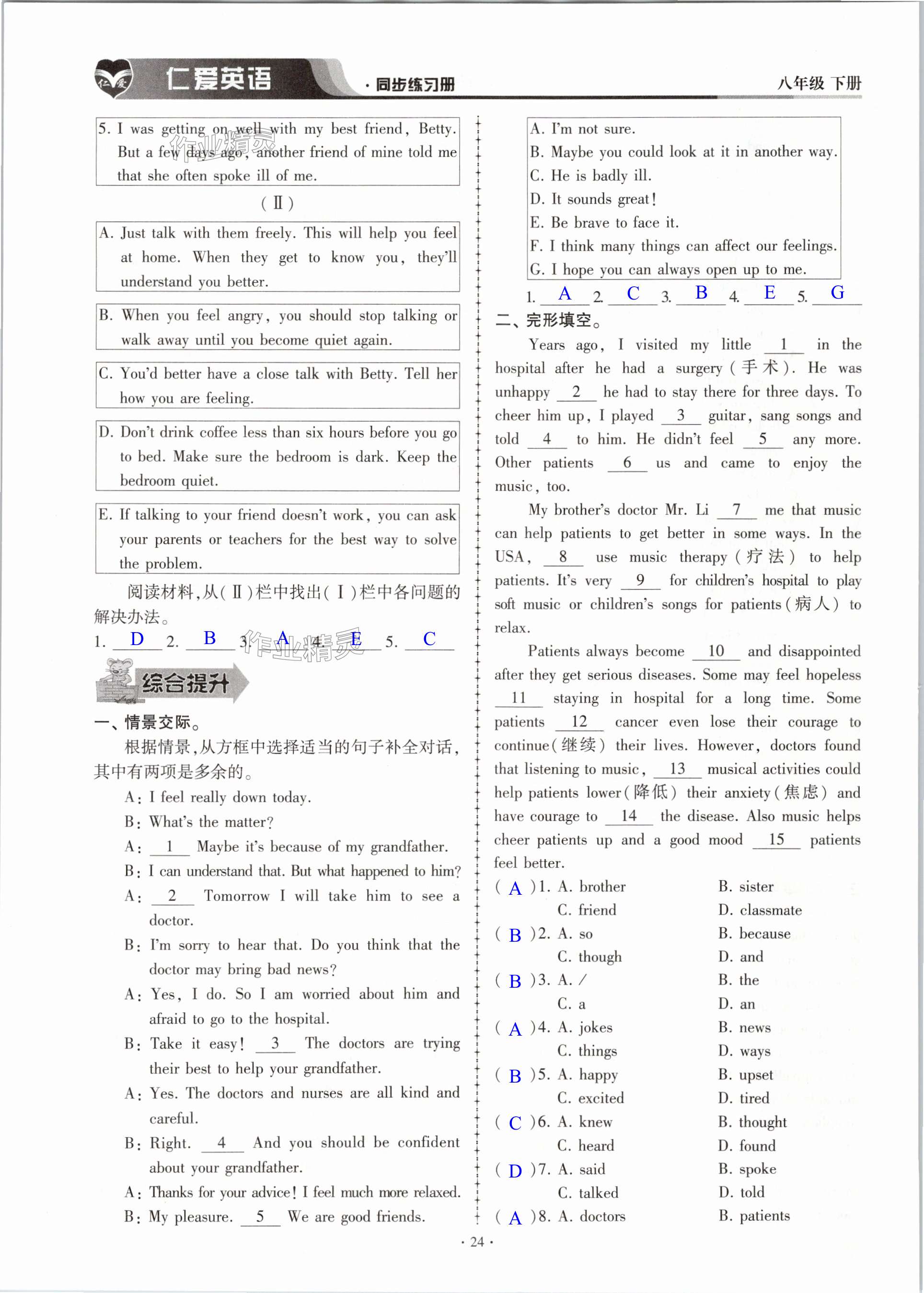 注:目前有些书本章节名称可能整理的还不是很完善,但都是按照顺序排列的,请同学们按照顺序仔细查找。练习册 2024年仁爱英语同步练习册八年级下册仁爱版内蒙古专版 答案主要是用来给同学们做完题方便对答案用的,请勿直接抄袭。