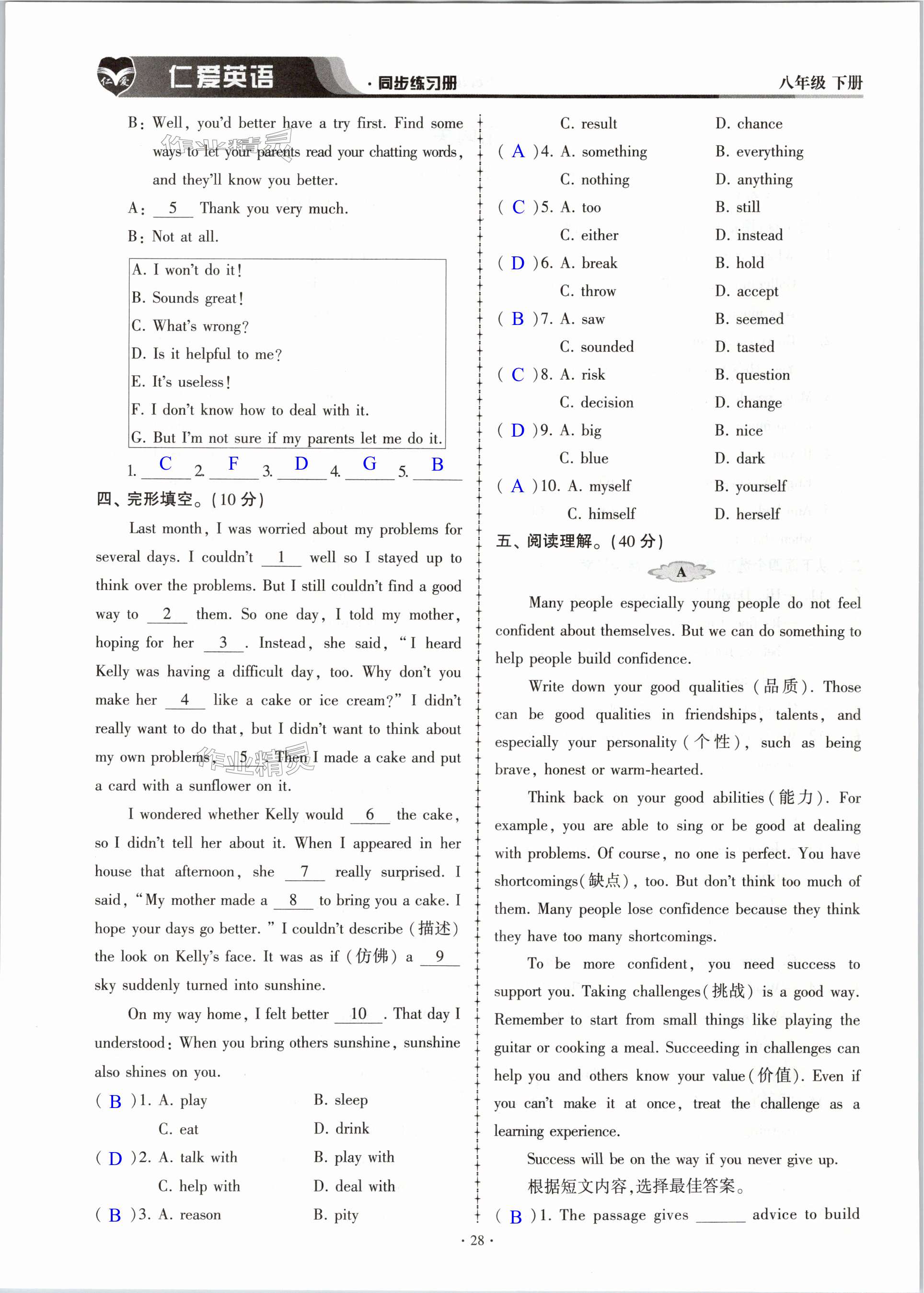 注:目前有些书本章节名称可能整理的还不是很完善,但都是按照顺序排列的,请同学们按照顺序仔细查找。练习册 2024年仁爱英语同步练习册八年级下册仁爱版内蒙古专版 答案主要是用来给同学们做完题方便对答案用的,请勿直接抄袭。