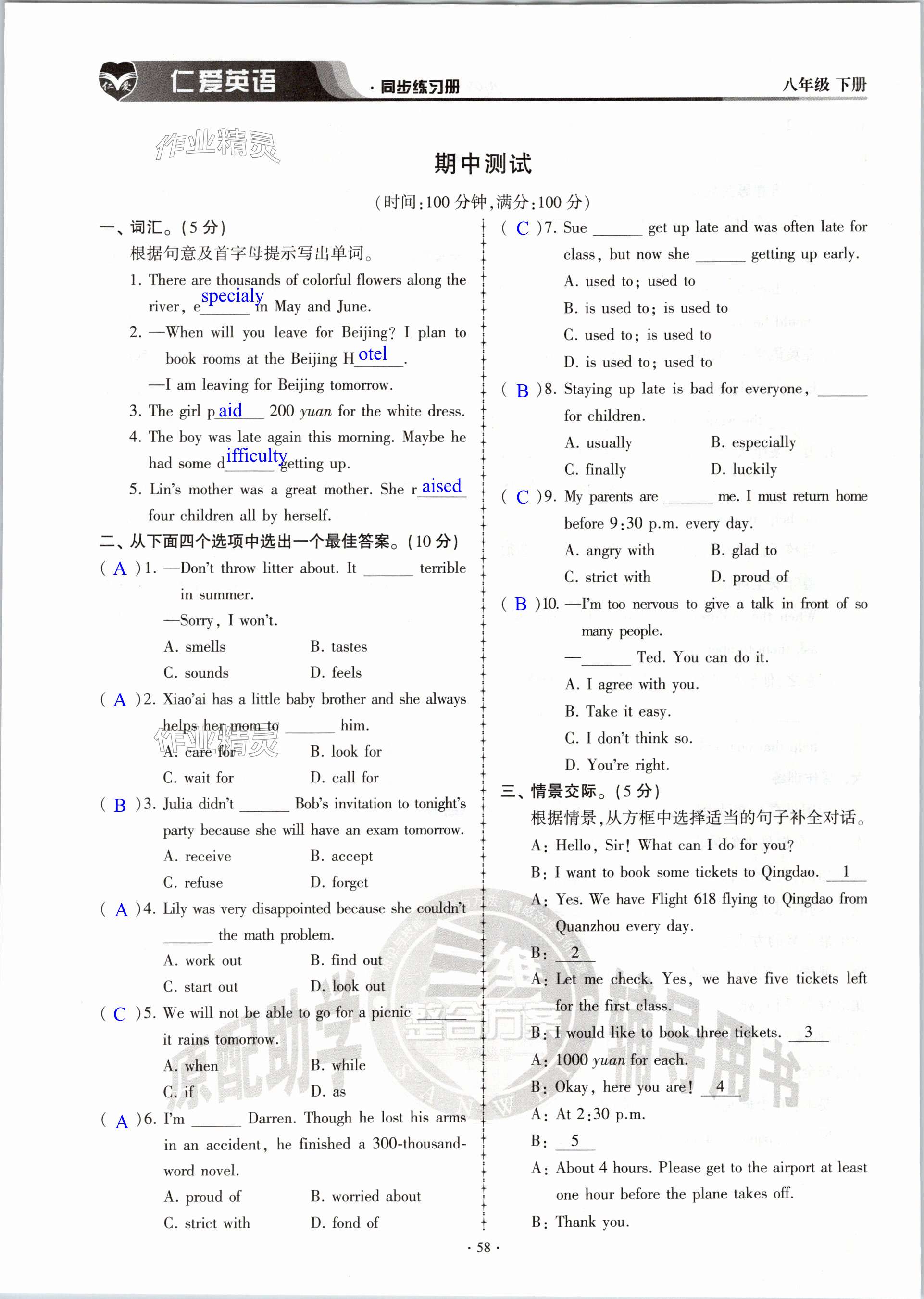 注:目前有些书本章节名称可能整理的还不是很完善,但都是按照顺序排列的,请同学们按照顺序仔细查找。练习册 2024年仁爱英语同步练习册八年级下册仁爱版内蒙古专版 答案主要是用来给同学们做完题方便对答案用的,请勿直接抄袭。