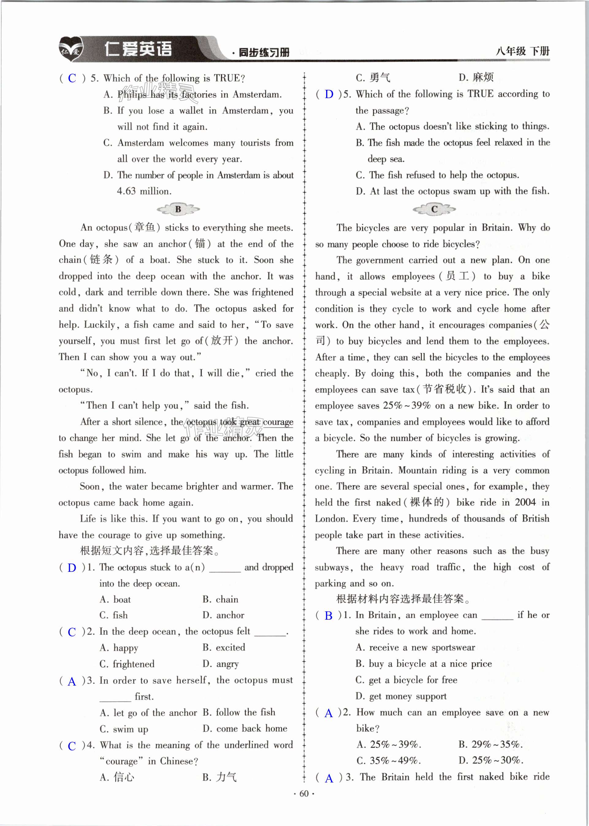 注:目前有些书本章节名称可能整理的还不是很完善,但都是按照顺序排列的,请同学们按照顺序仔细查找。练习册 2024年仁爱英语同步练习册八年级下册仁爱版内蒙古专版 答案主要是用来给同学们做完题方便对答案用的,请勿直接抄袭。