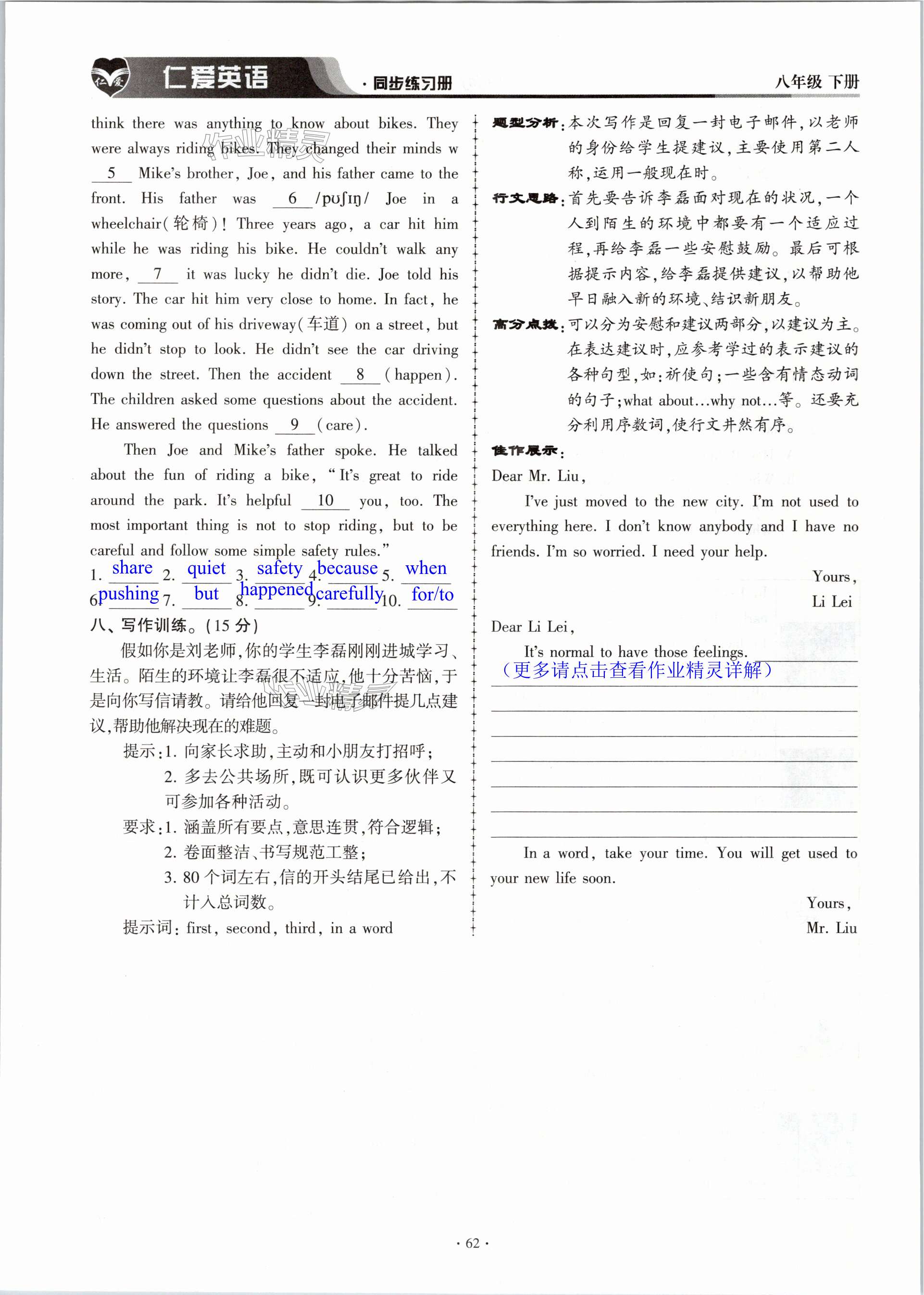 注:目前有些书本章节名称可能整理的还不是很完善,但都是按照顺序排列的,请同学们按照顺序仔细查找。练习册 2024年仁爱英语同步练习册八年级下册仁爱版内蒙古专版 答案主要是用来给同学们做完题方便对答案用的,请勿直接抄袭。