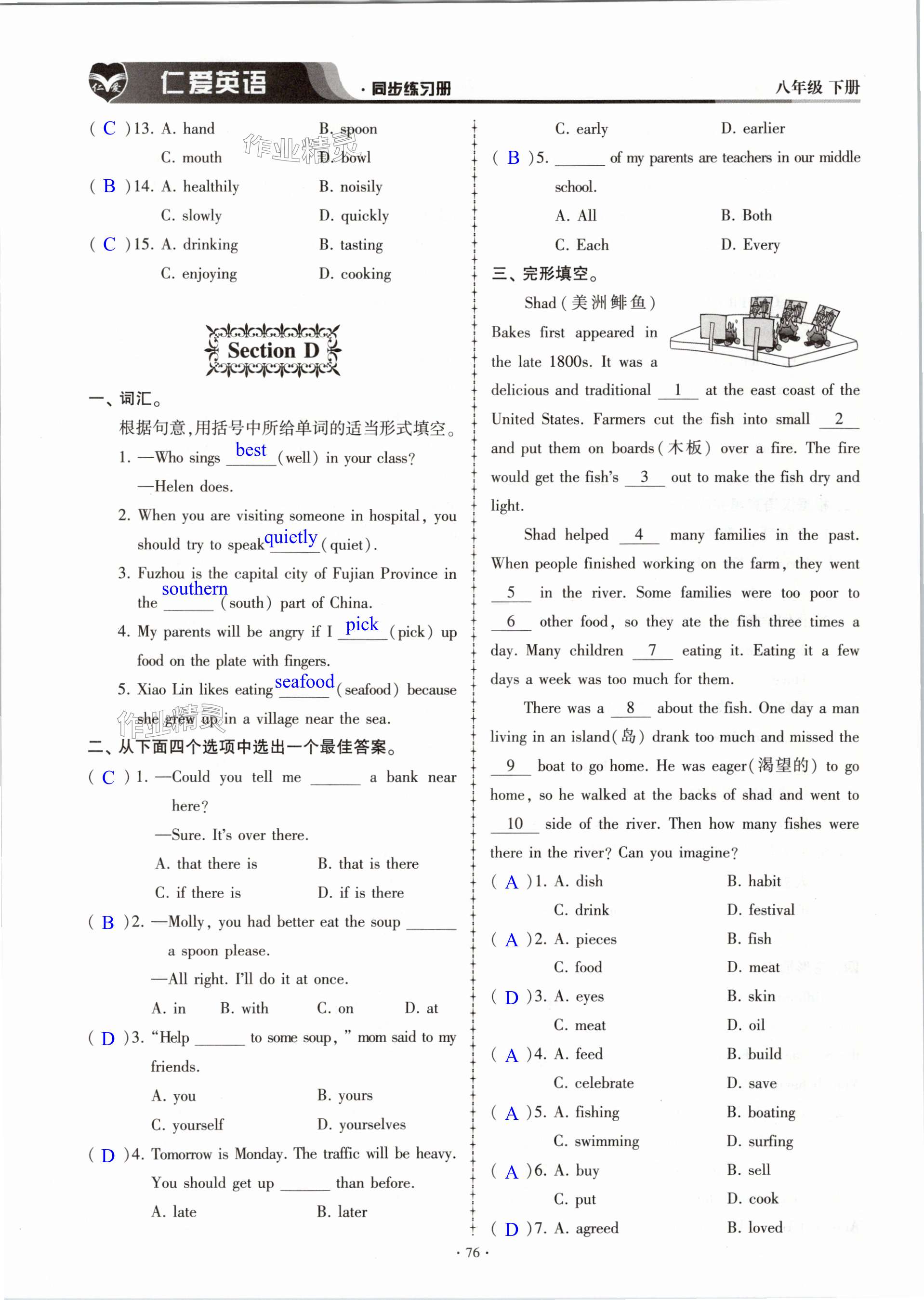 注:目前有些书本章节名称可能整理的还不是很完善,但都是按照顺序排列的,请同学们按照顺序仔细查找。练习册 2024年仁爱英语同步练习册八年级下册仁爱版内蒙古专版 答案主要是用来给同学们做完题方便对答案用的,请勿直接抄袭。