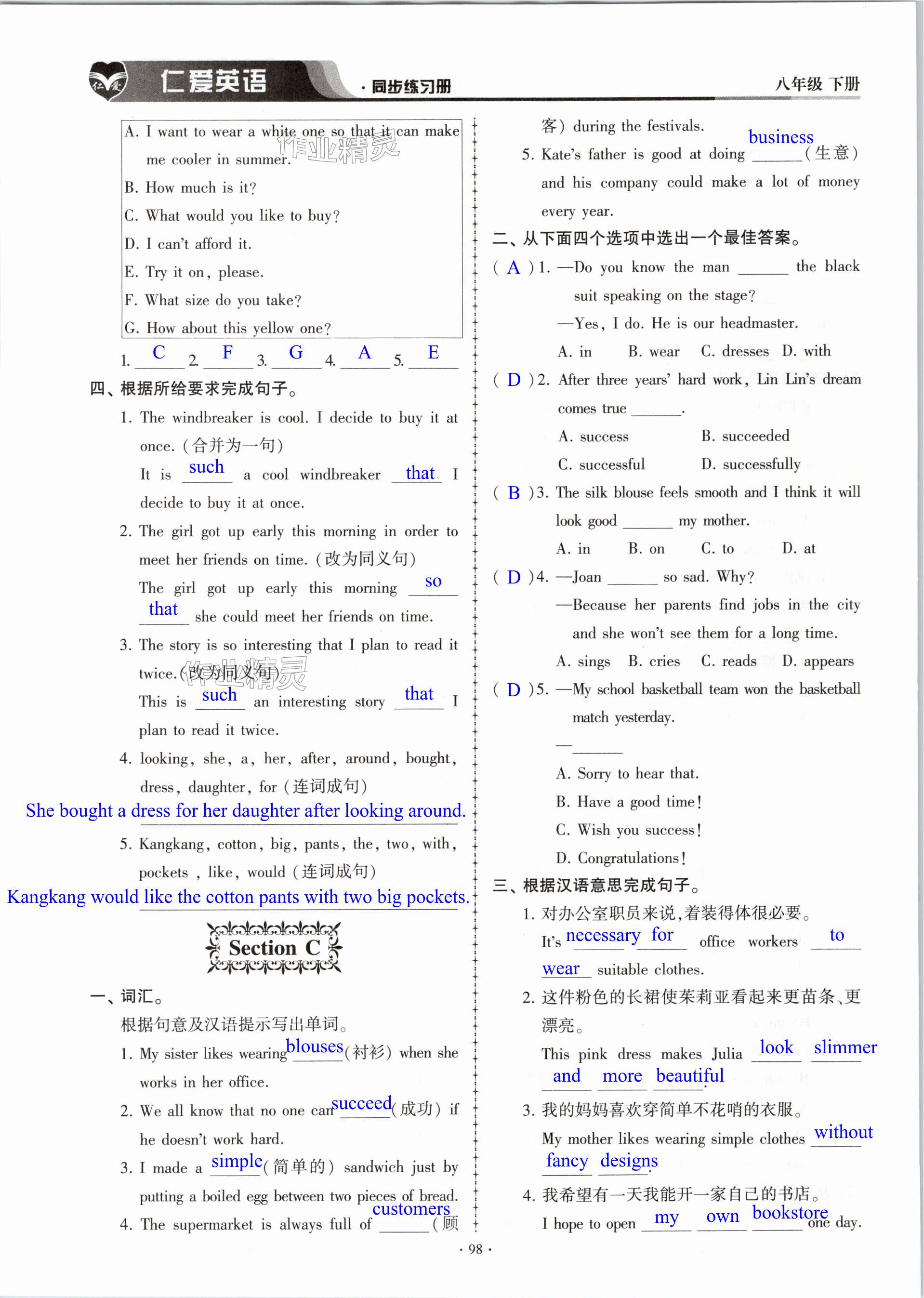 注:目前有些书本章节名称可能整理的还不是很完善,但都是按照顺序排列的,请同学们按照顺序仔细查找。练习册 2024年仁爱英语同步练习册八年级下册仁爱版内蒙古专版 答案主要是用来给同学们做完题方便对答案用的,请勿直接抄袭。