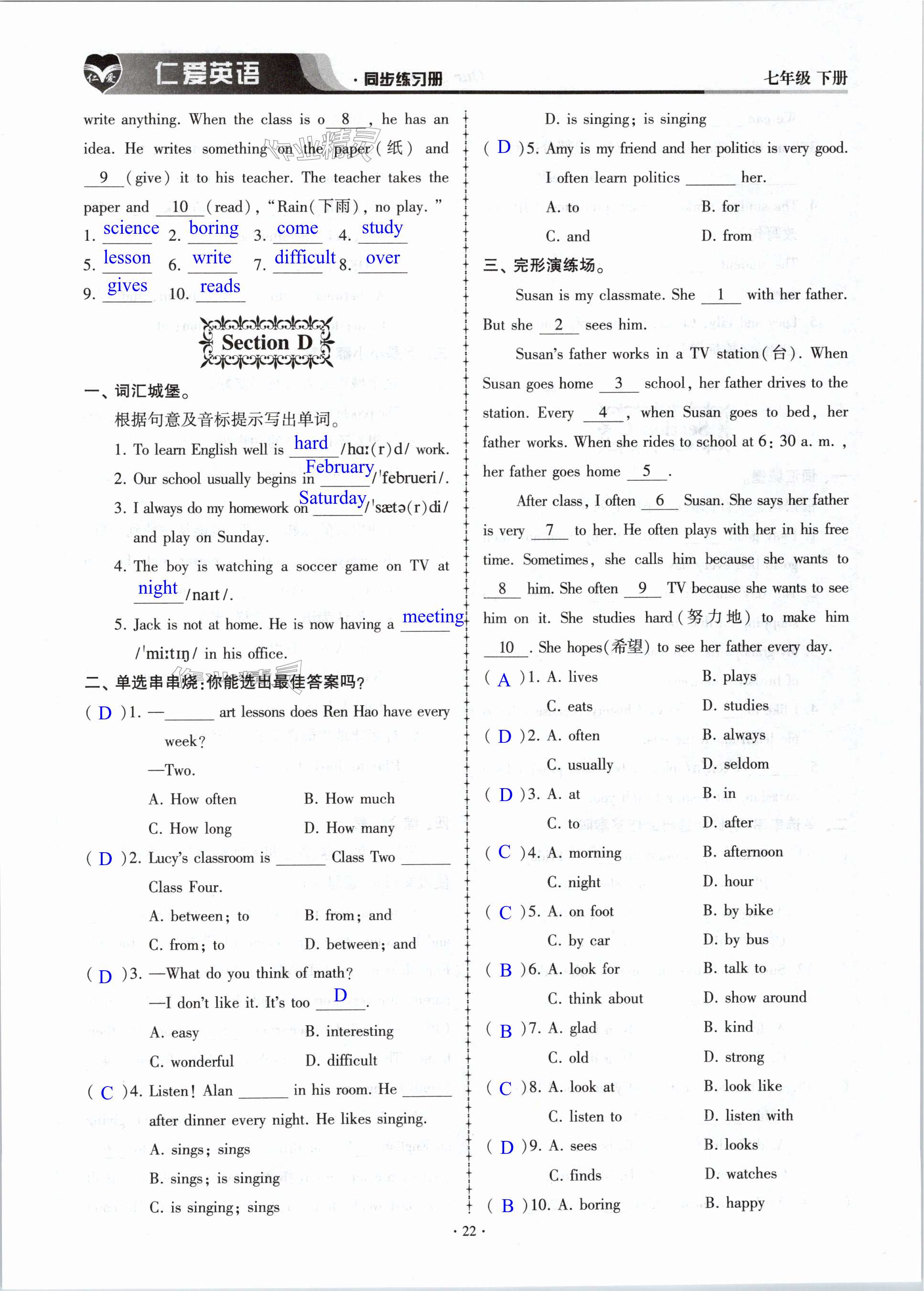 2024年仁爱英语同步练习册七年级下册仁爱版内蒙古专版