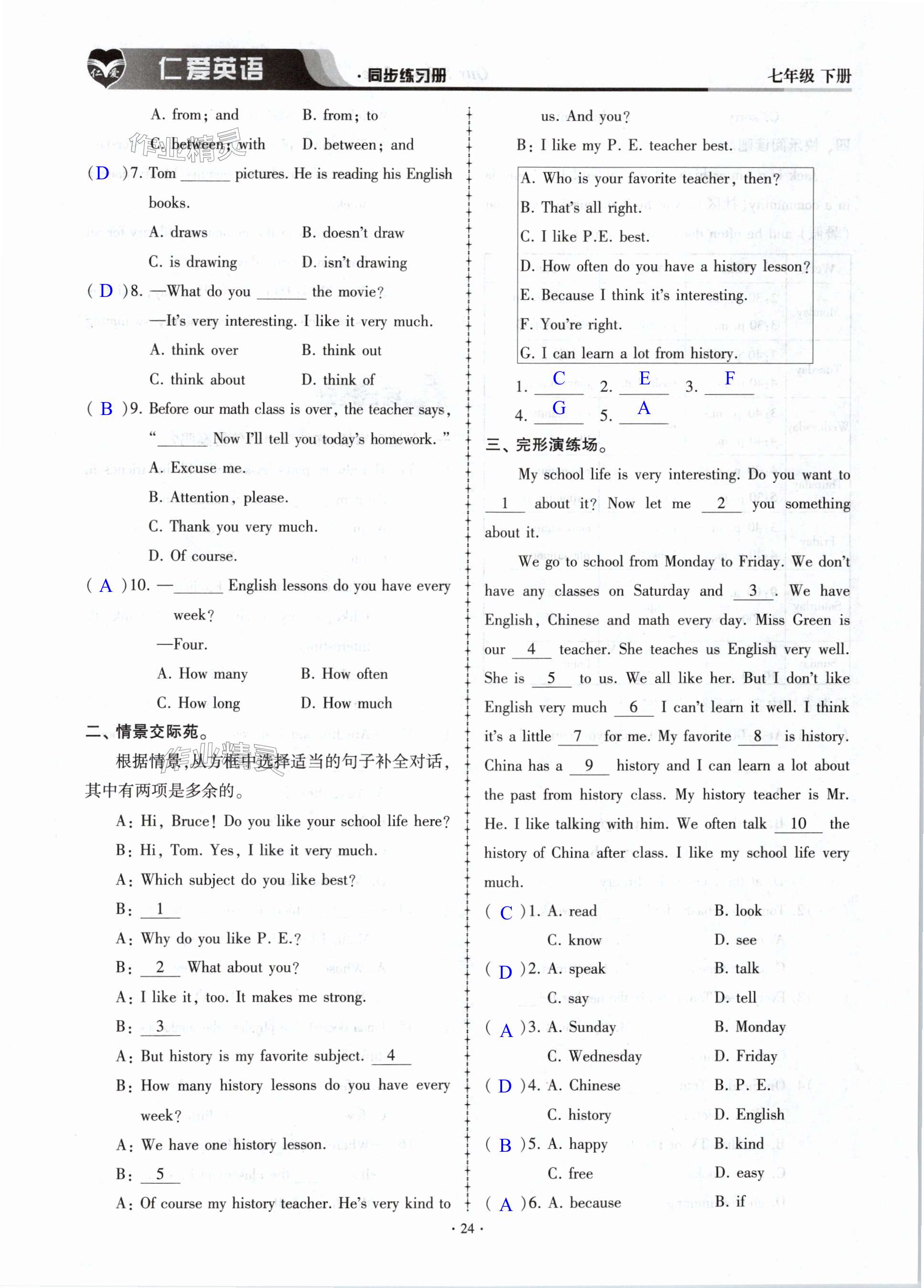 2024年仁爱英语同步练习册七年级下册仁爱版内蒙古专版