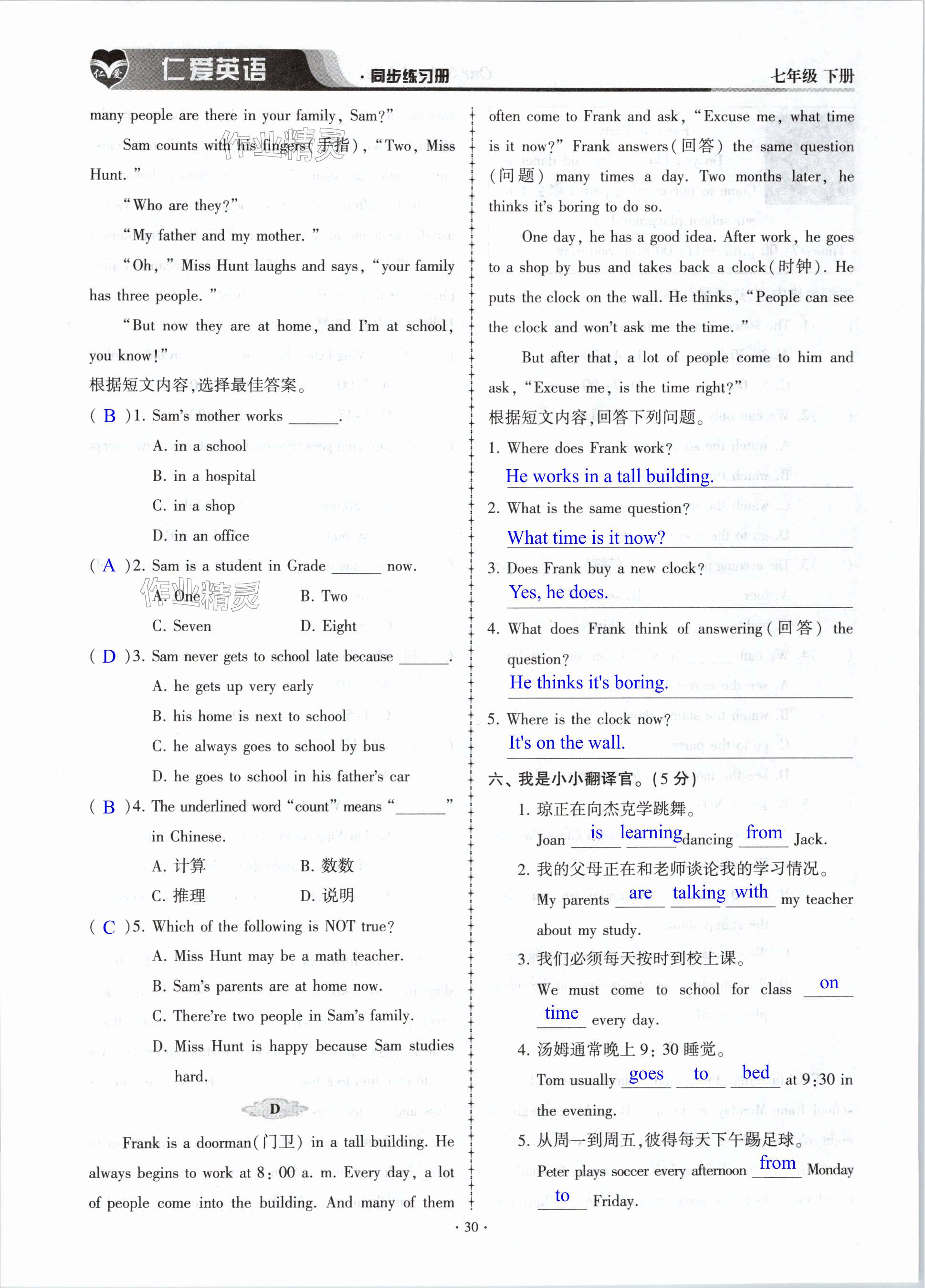 注:目前有些书本章节名称可能整理的还不是很完善,但都是按照顺序排列的,请同学们按照顺序仔细查找。练习册 2024年仁爱英语同步练习册七年级下册仁爱版内蒙古专版 答案主要是用来给同学们做完题方便对答案用的,请勿直接抄袭。