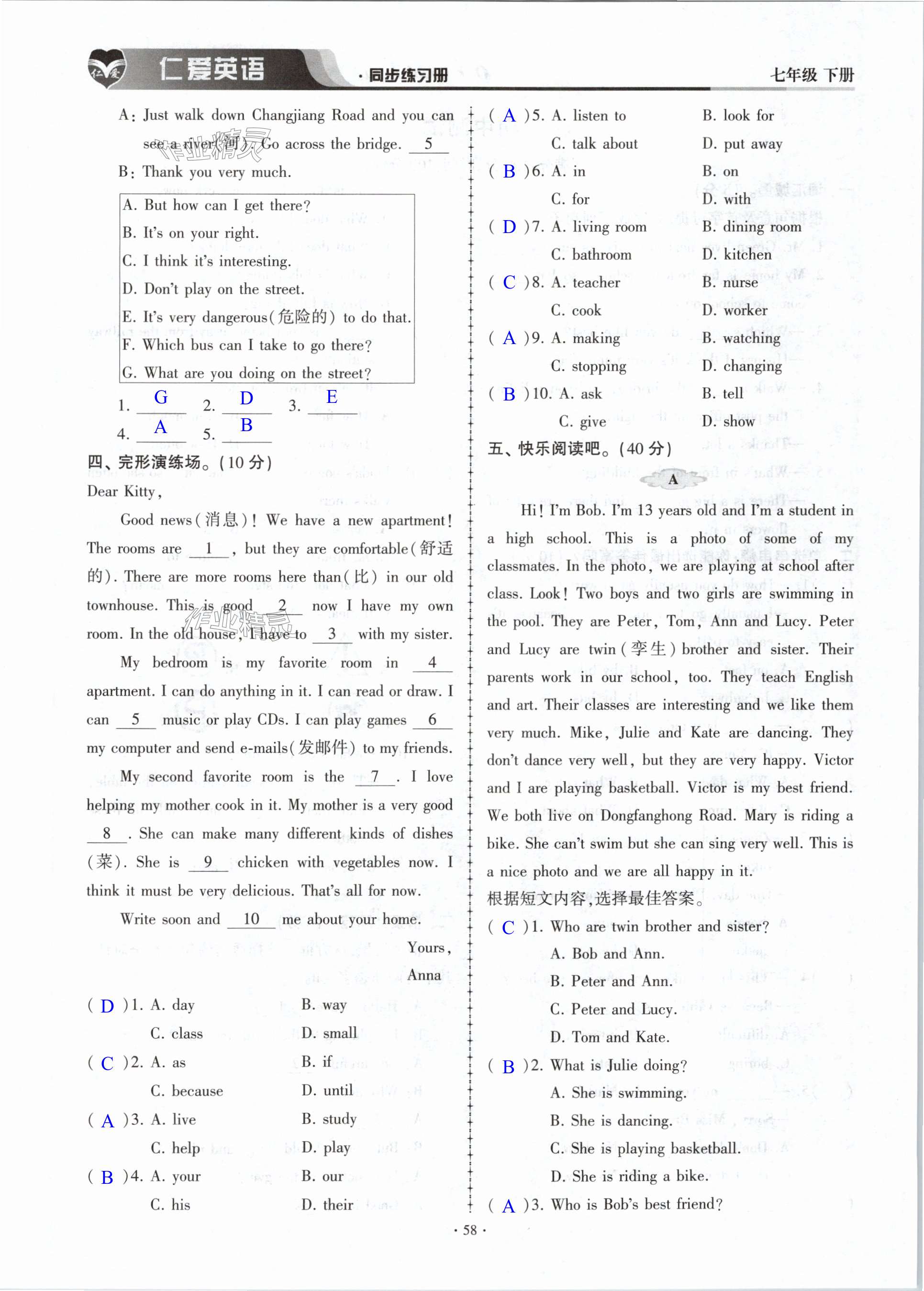 2024年仁爱英语同步练习册七年级下册仁爱版内蒙古专版