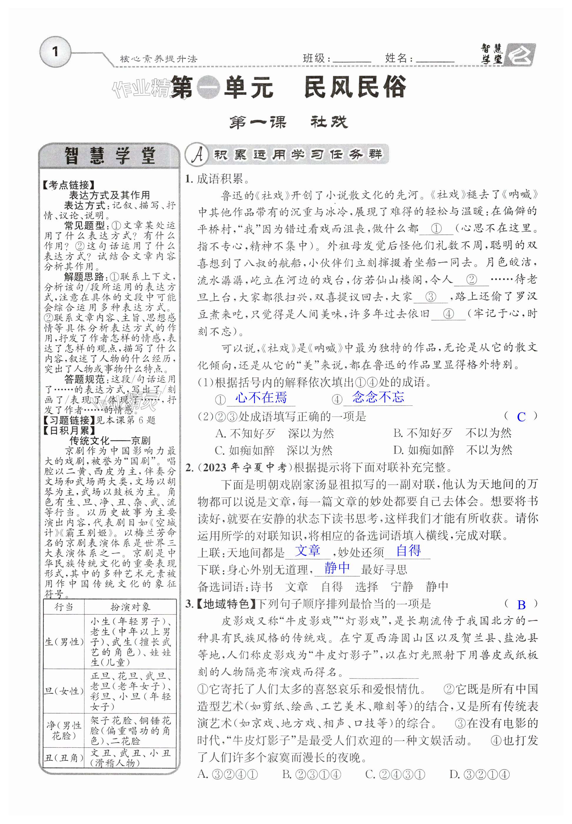 2024年智慧学堂八年级语文下册人教版宁夏专版