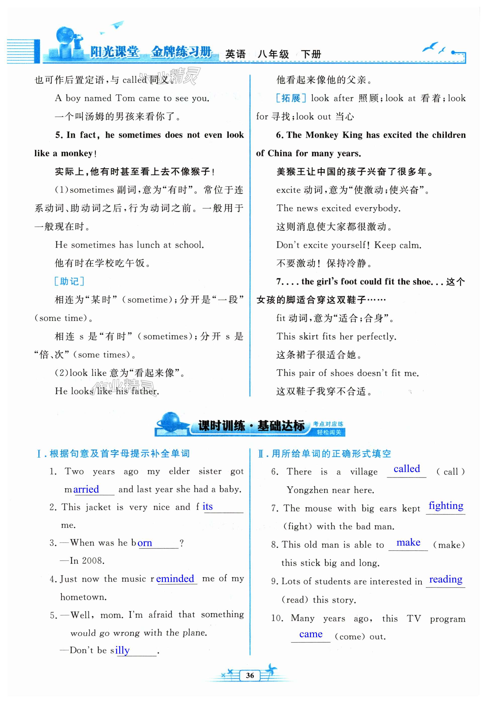2024年阳光课堂金牌练习册八年级英语下册人教版