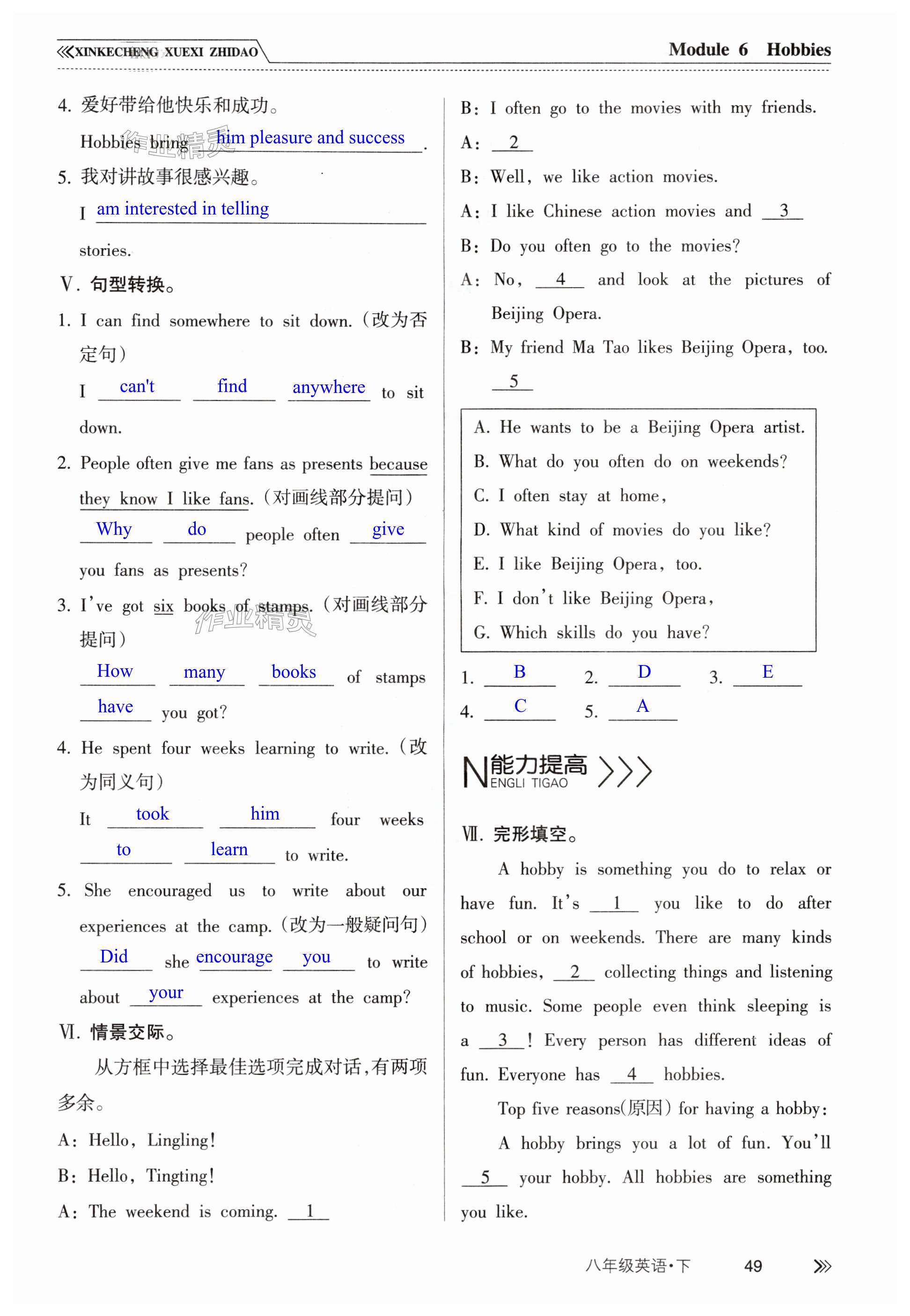 注:目前有些书本章节名称可能整理的还不是很完善,但都是按照顺序排列的,请同学们按照顺序仔细查找。练习册 2024年新课程学习指导南方出版社八年级英语下册外研版 答案主要是用来给同学们做完题方便对答案用的,请勿直接抄袭。