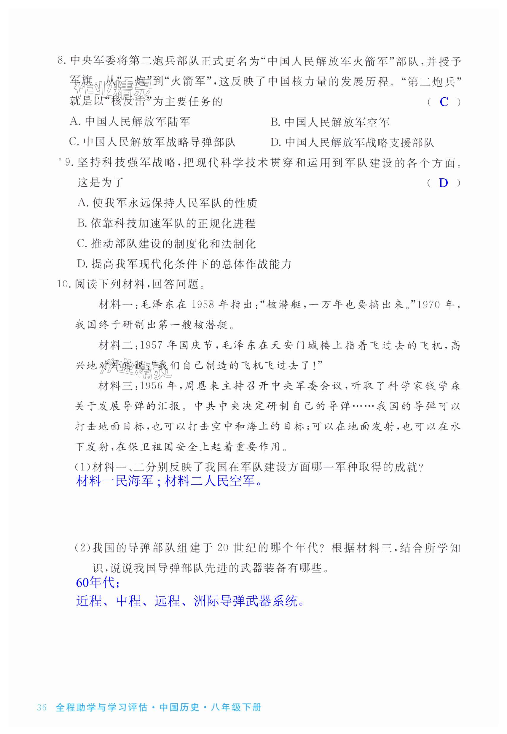 注:目前有些书本章节名称可能整理的还不是很完善,但都是按照顺序排列的,请同学们按照顺序仔细查找。练习册 2024年全程助学与学习评估八年级历史下册人教版 答案主要是用来给同学们做完题方便对答案用的,请勿直接抄袭。