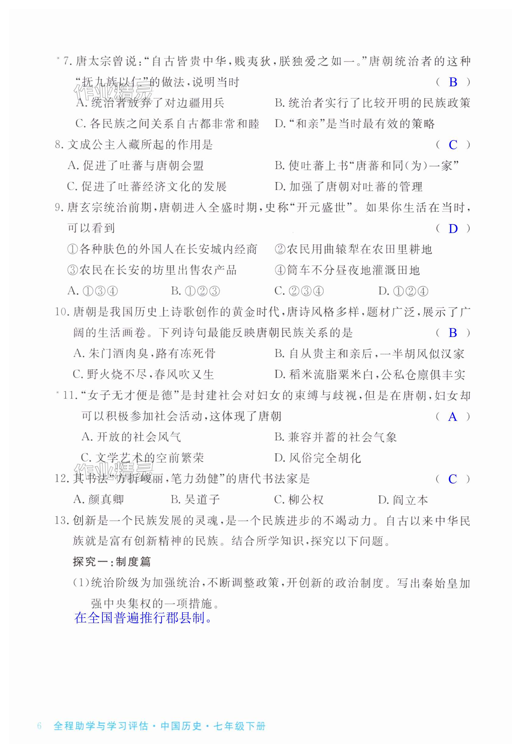 注:目前有些书本章节名称可能整理的还不是很完善,但都是按照顺序排列的,请同学们按照顺序仔细查找。练习册 2024年全程助学与学习评估七年级历史下册人教版 答案主要是用来给同学们做完题方便对答案用的,请勿直接抄袭。