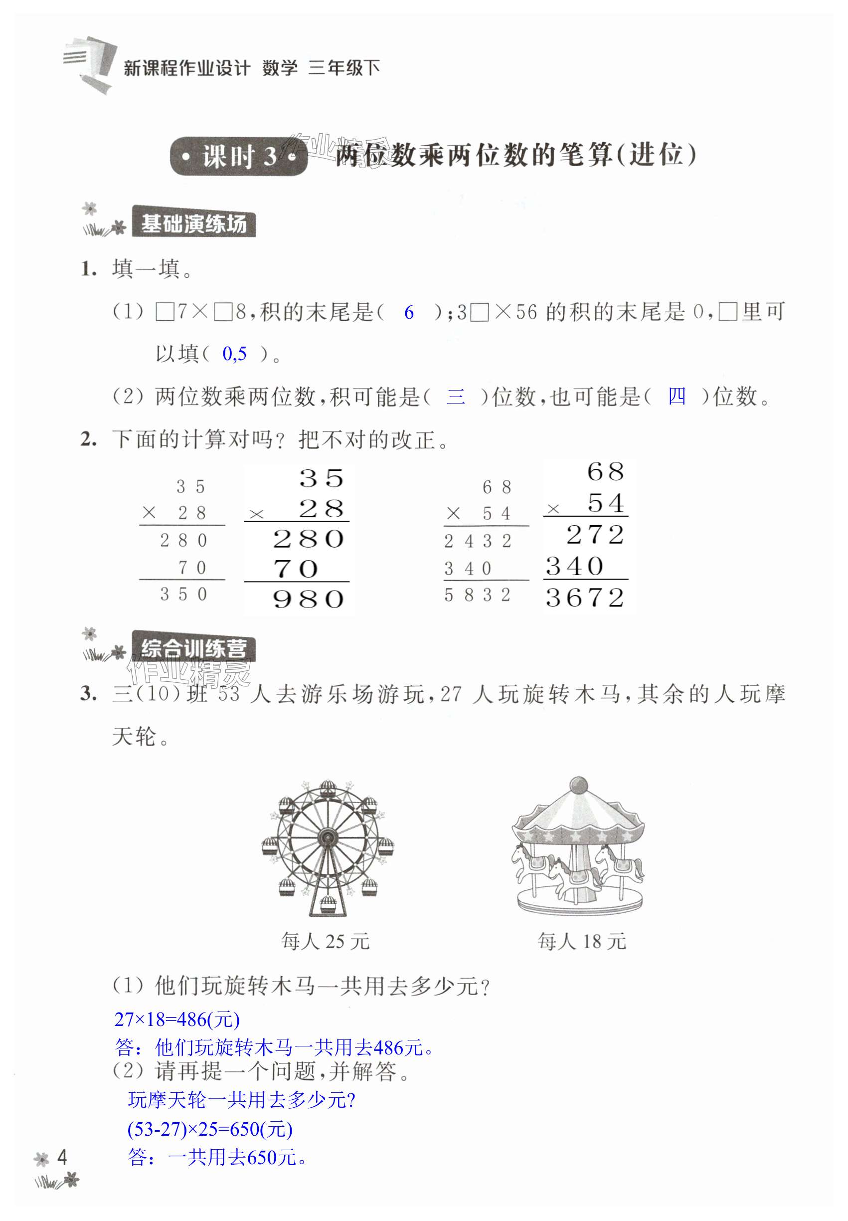 注:目前有些书本章节名称可能整理的还不是很完善,但都是按照顺序排列的,请同学们按照顺序仔细查找。练习册 2024年新课程作业设计三年级数学下册苏教版 答案主要是用来给同学们做完题方便对答案用的,请勿直接抄袭。