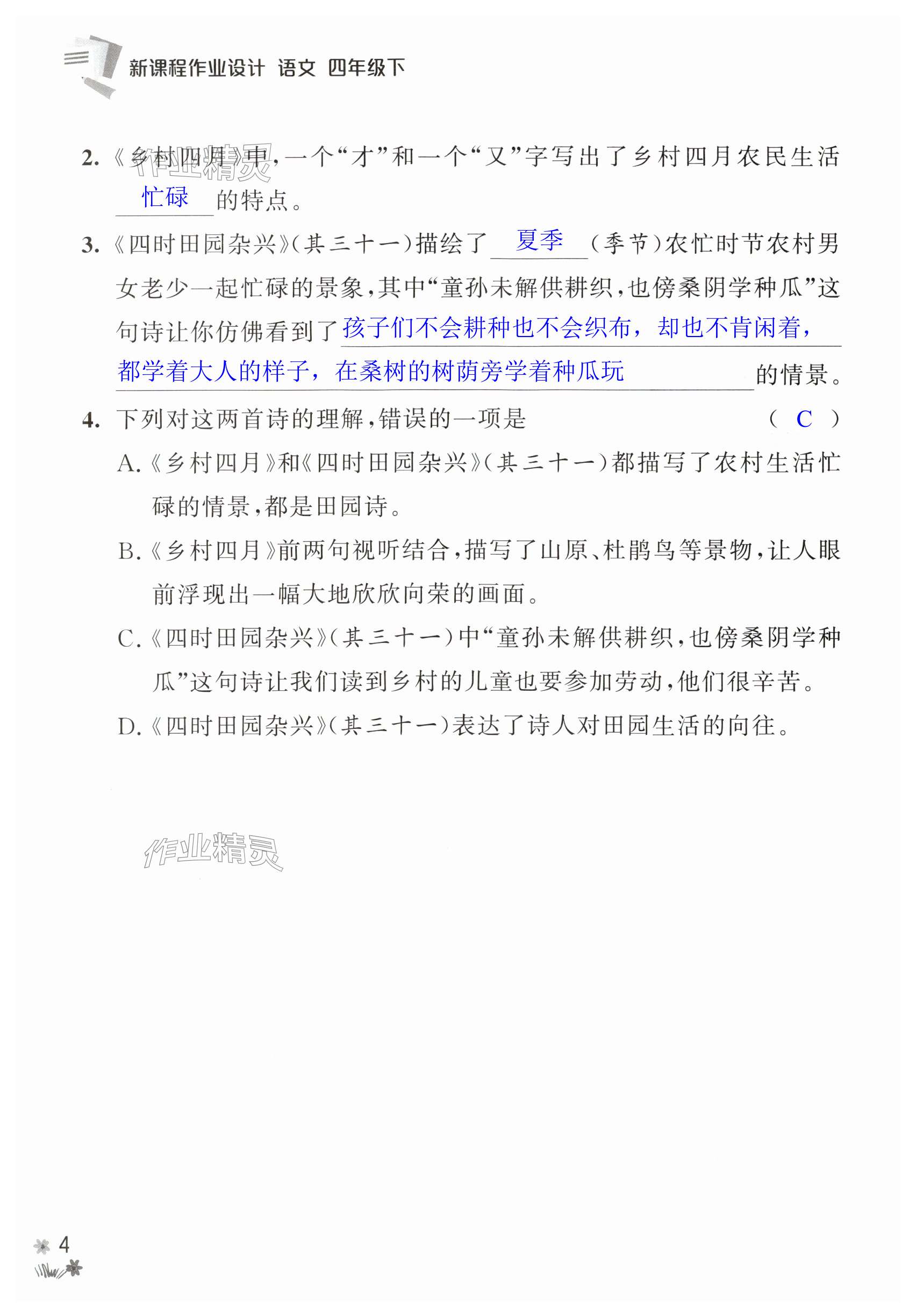 注:目前有些书本章节名称可能整理的还不是很完善,但都是按照顺序排列的,请同学们按照顺序仔细查找。练习册 2024年新课程作业设计四年级语文下册人教版 答案主要是用来给同学们做完题方便对答案用的,请勿直接抄袭。