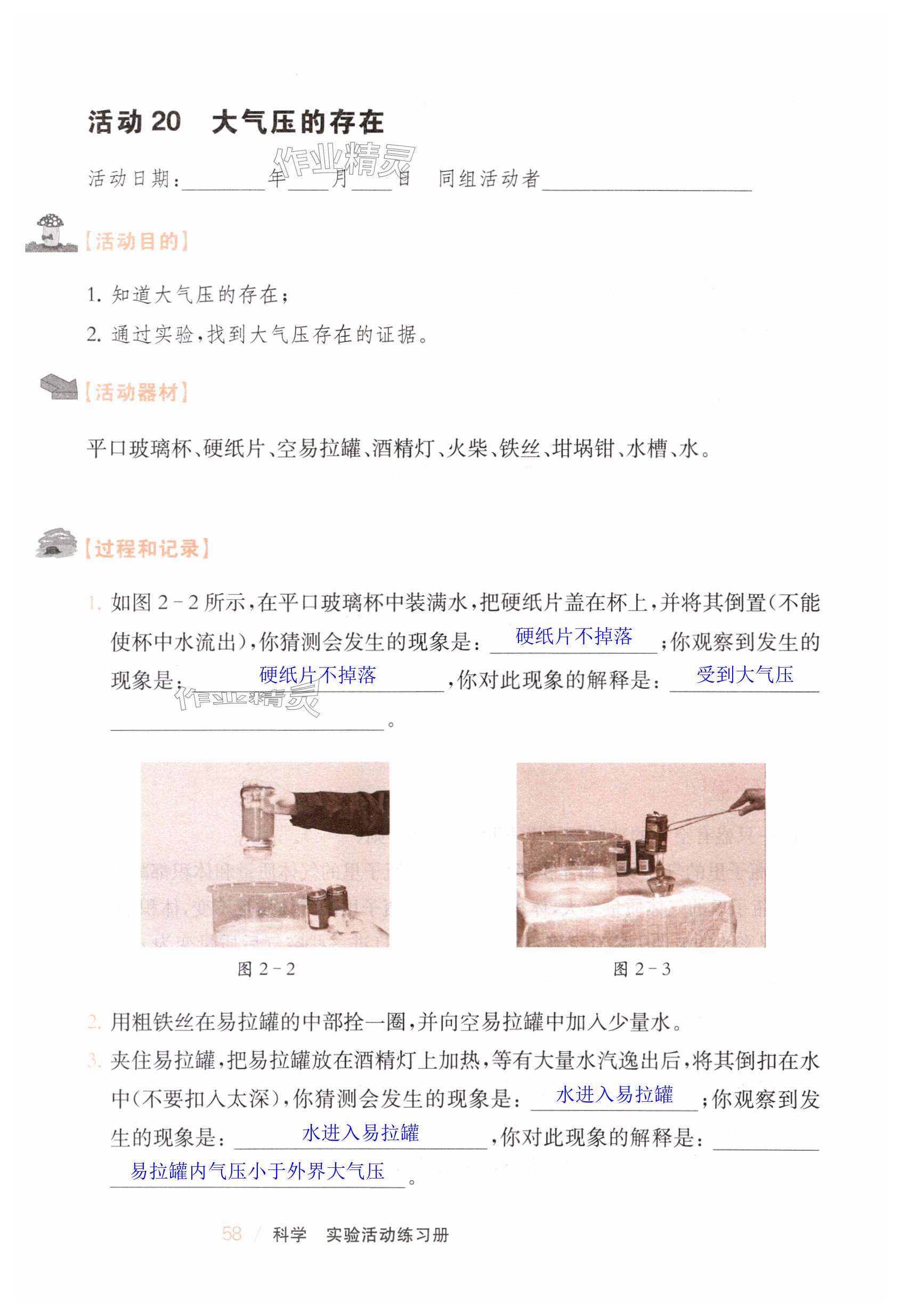 2024年实验活动练习册七年级科学下册华师大版