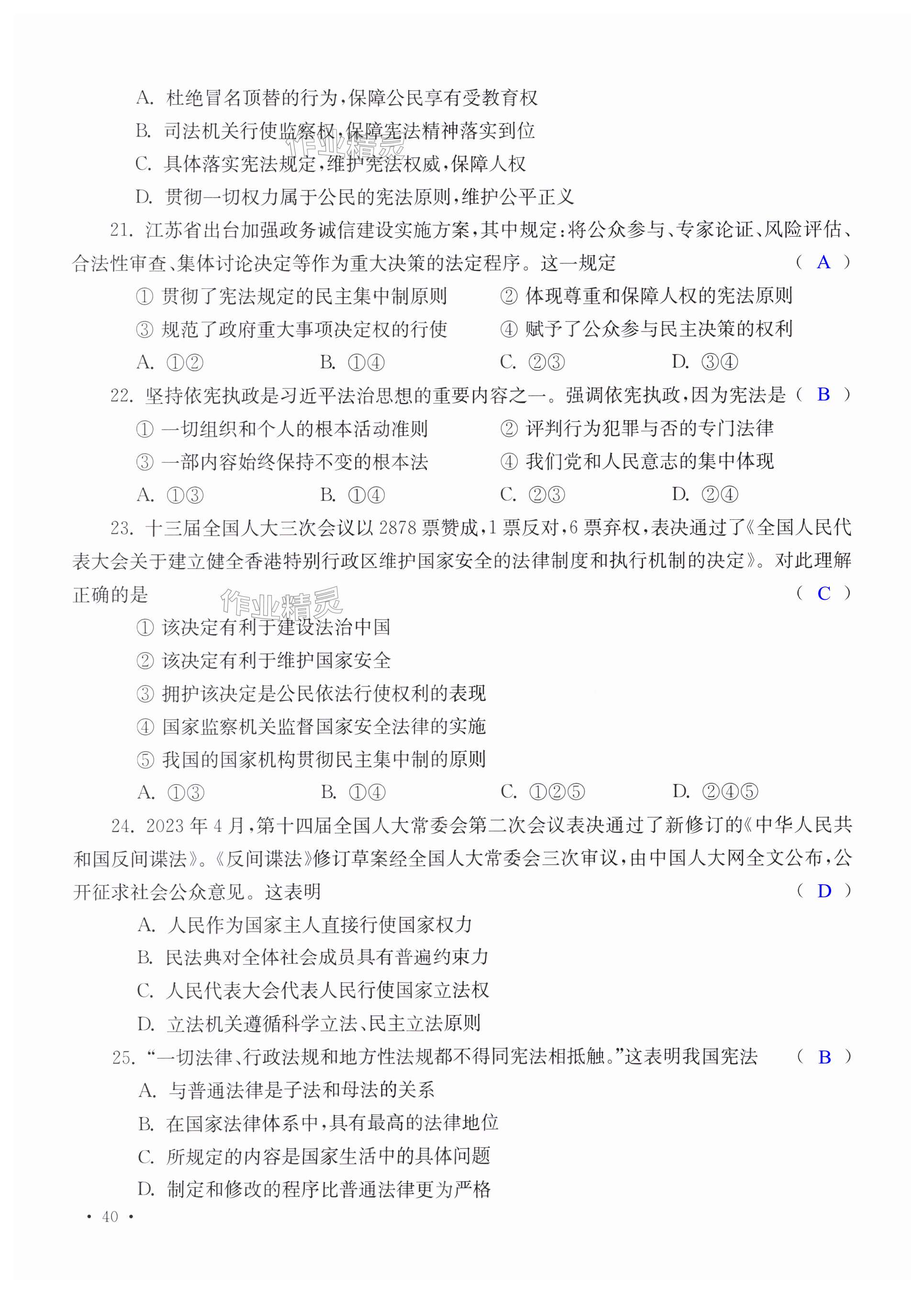 注:目前有些书本章节名称可能整理的还不是很完善,但都是按照顺序排列的,请同学们按照顺序仔细查找。练习册 2024年南京市初中总复习指南道德与法治历史 答案主要是用来给同学们做完题方便对答案用的,请勿直接抄袭。