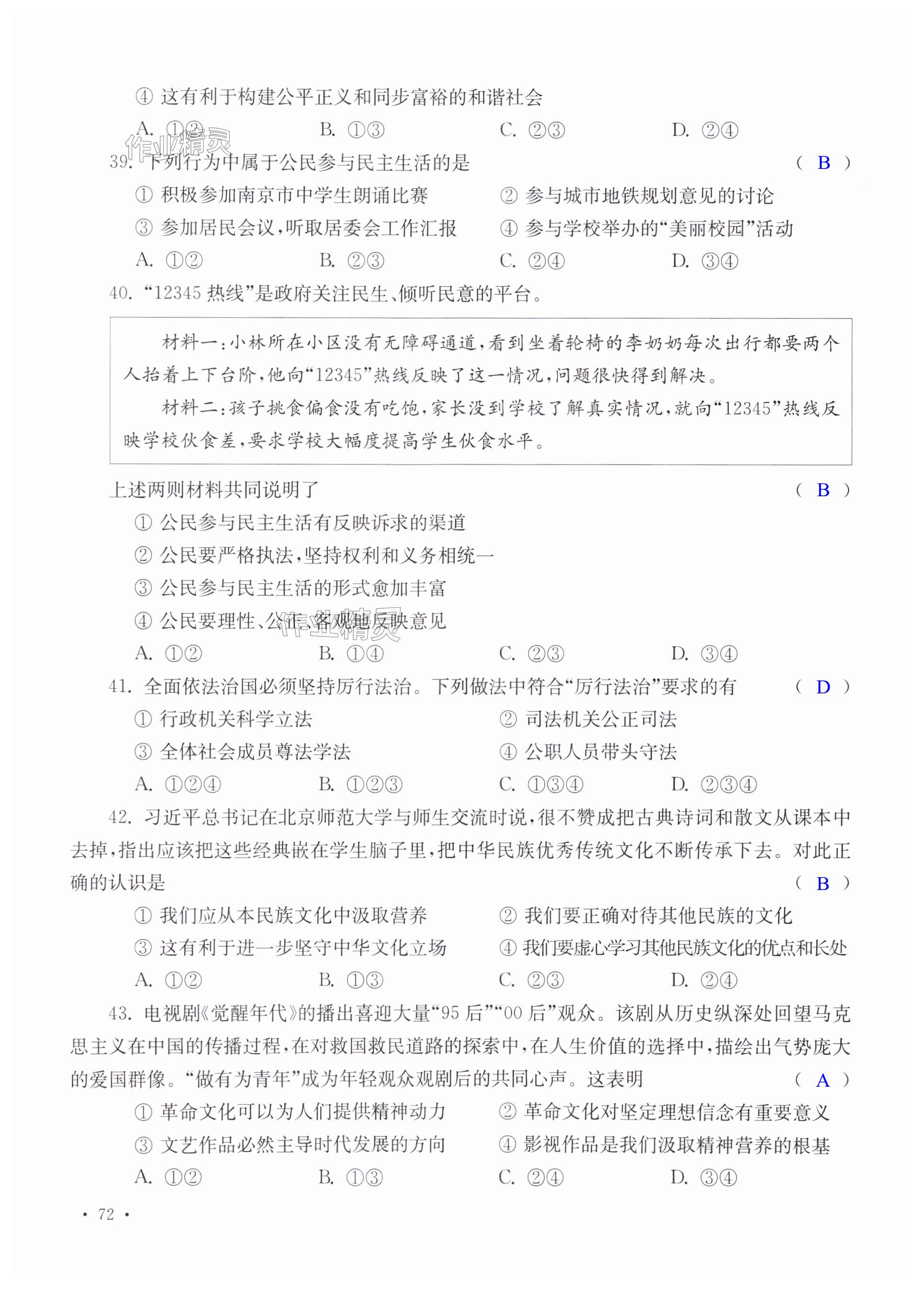注:目前有些书本章节名称可能整理的还不是很完善,但都是按照顺序排列的,请同学们按照顺序仔细查找。练习册 2024年南京市初中总复习指南道德与法治历史 答案主要是用来给同学们做完题方便对答案用的,请勿直接抄袭。