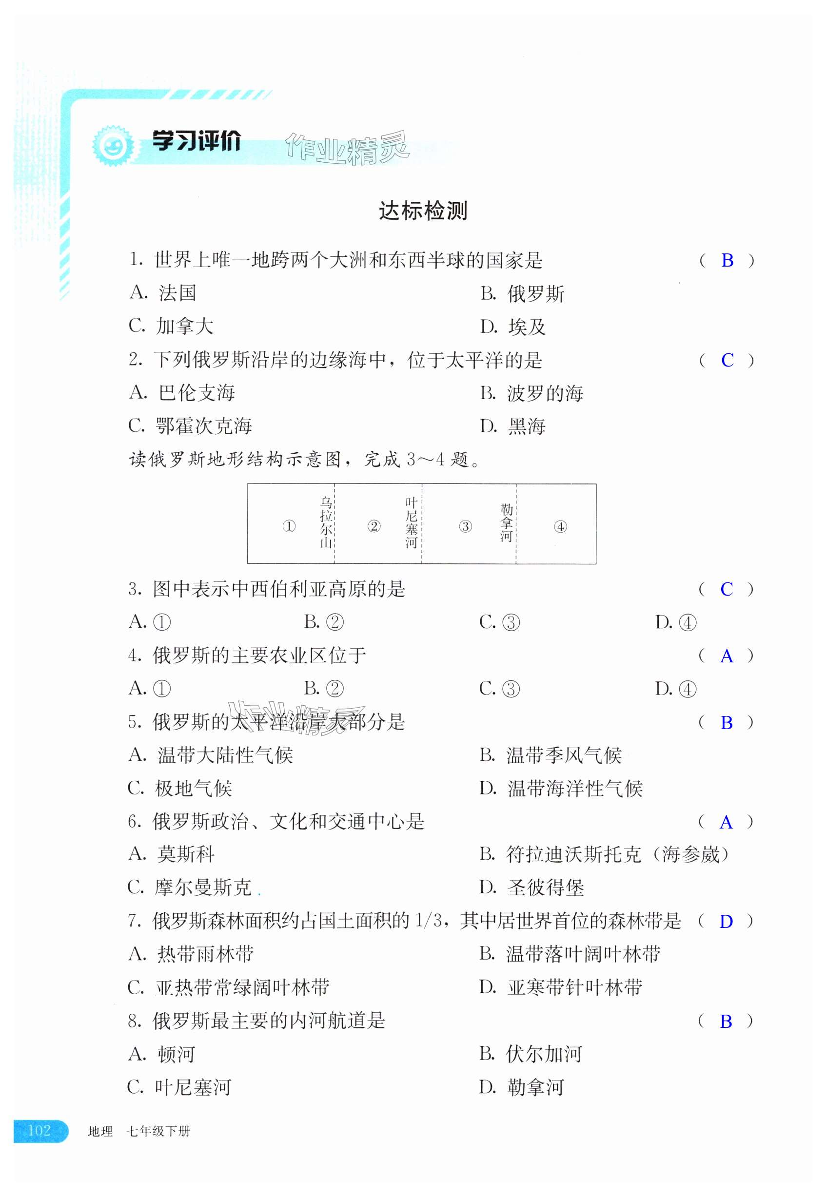 注:目前有些书本章节名称可能整理的还不是很完善,但都是按照顺序排列的,请同学们按照顺序仔细查找。练习册 2024年助学读本七年级地理下册湘教版 答案主要是用来给同学们做完题方便对答案用的,请勿直接抄袭。