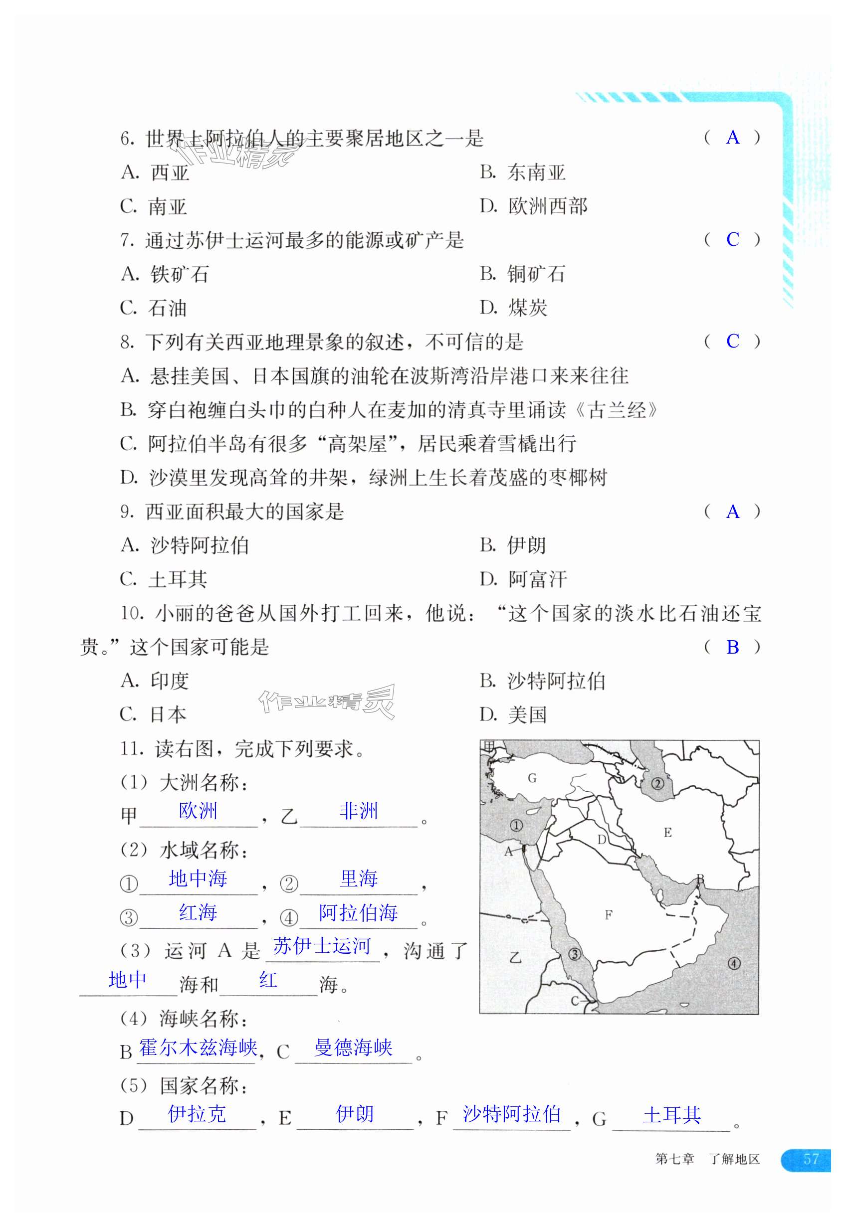 注:目前有些书本章节名称可能整理的还不是很完善,但都是按照顺序排列的,请同学们按照顺序仔细查找。练习册 2024年助学读本七年级地理下册湘教版 答案主要是用来给同学们做完题方便对答案用的,请勿直接抄袭。