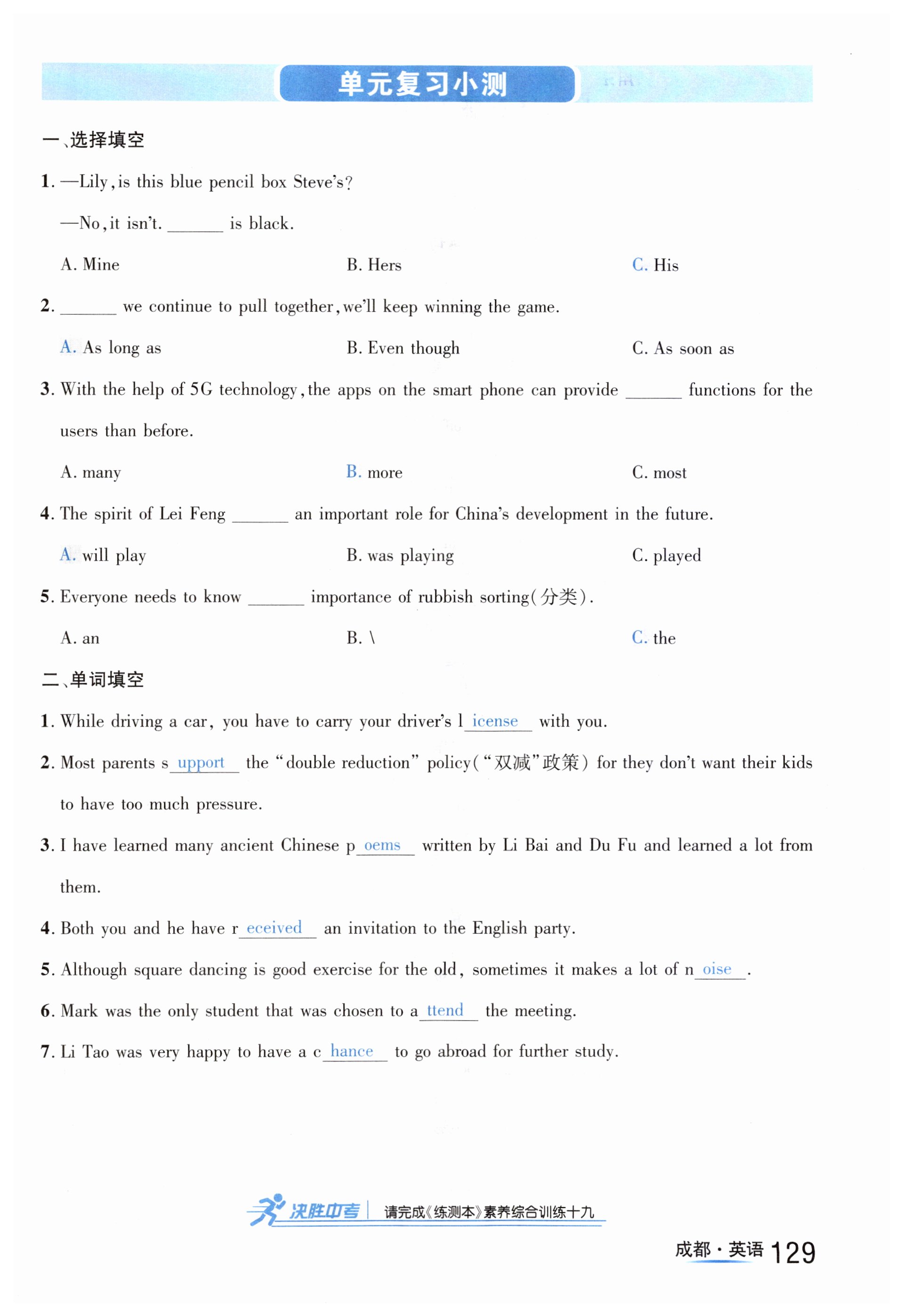 注:目前有些书本章节名称可能整理的还不是很完善,但都是按照顺序排列的,请同学们按照顺序仔细查找。练习册 2024年国华考试中考总动员英语成都专版 答案主要是用来给同学们做完题方便对答案用的,请勿直接抄袭。