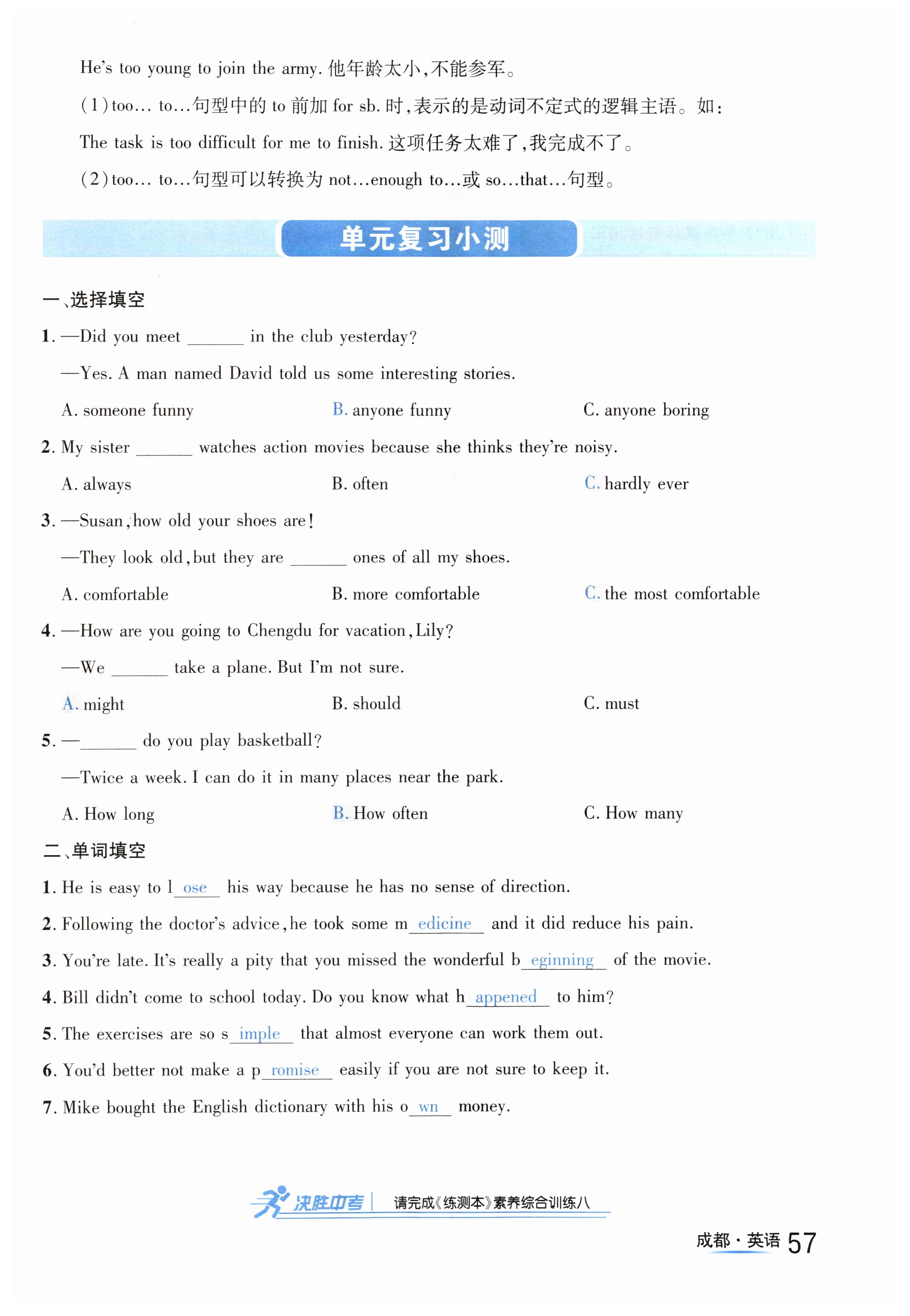 注:目前有些书本章节名称可能整理的还不是很完善,但都是按照顺序排列的,请同学们按照顺序仔细查找。练习册 2024年国华考试中考总动员英语成都专版 答案主要是用来给同学们做完题方便对答案用的,请勿直接抄袭。