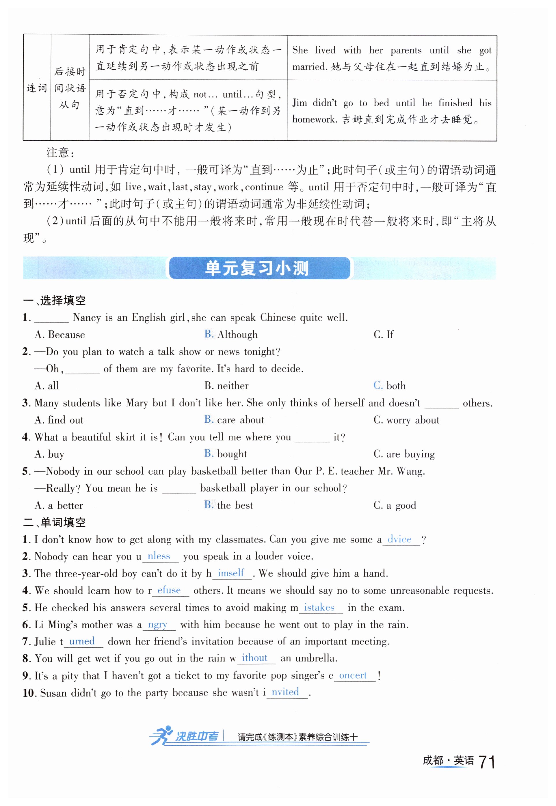 注:目前有些书本章节名称可能整理的还不是很完善,但都是按照顺序排列的,请同学们按照顺序仔细查找。练习册 2024年国华考试中考总动员英语成都专版 答案主要是用来给同学们做完题方便对答案用的,请勿直接抄袭。