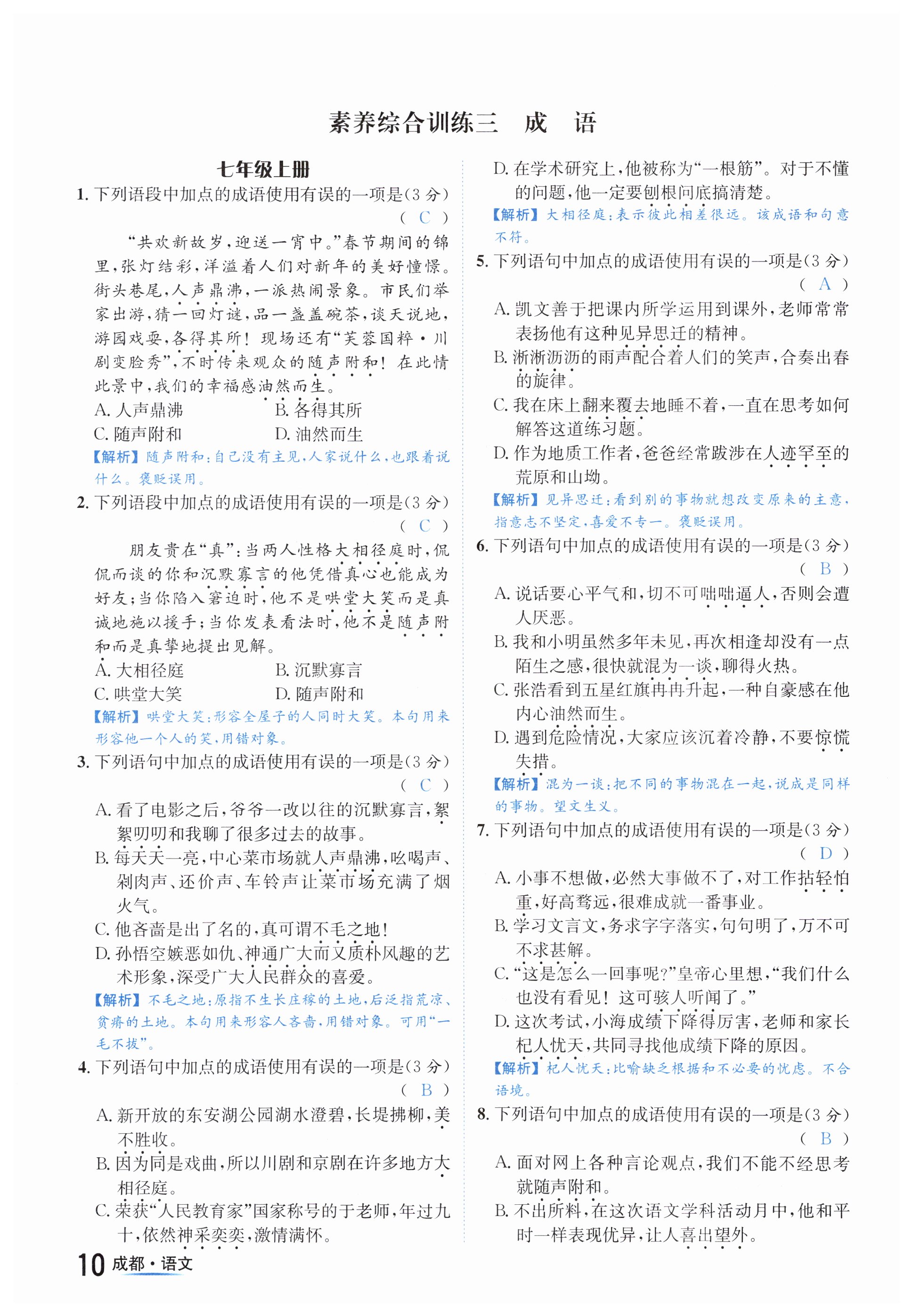 注:目前有些书本章节名称可能整理的还不是很完善,但都是按照顺序排列的,请同学们按照顺序仔细查找。练习册 2024年国华考试中考总动员语文成都专版 答案主要是用来给同学们做完题方便对答案用的,请勿直接抄袭。