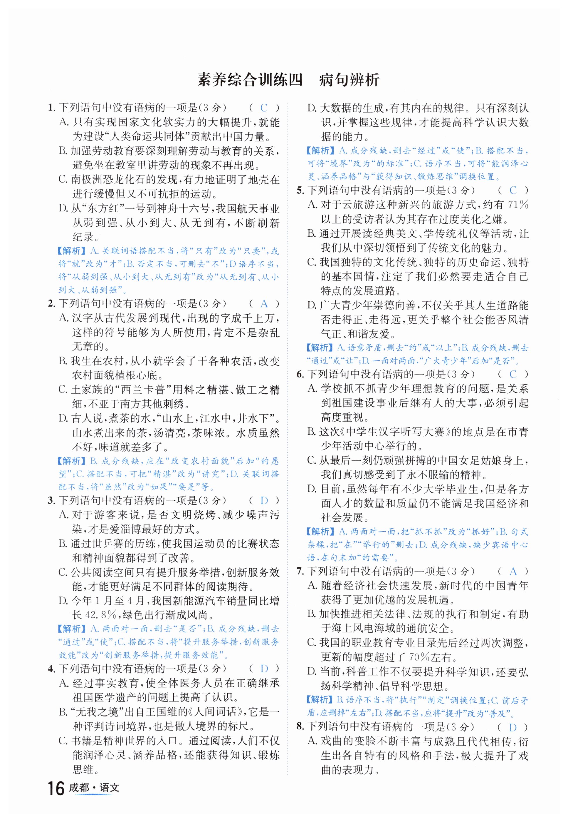 注:目前有些书本章节名称可能整理的还不是很完善,但都是按照顺序排列的,请同学们按照顺序仔细查找。练习册 2024年国华考试中考总动员语文成都专版 答案主要是用来给同学们做完题方便对答案用的,请勿直接抄袭。