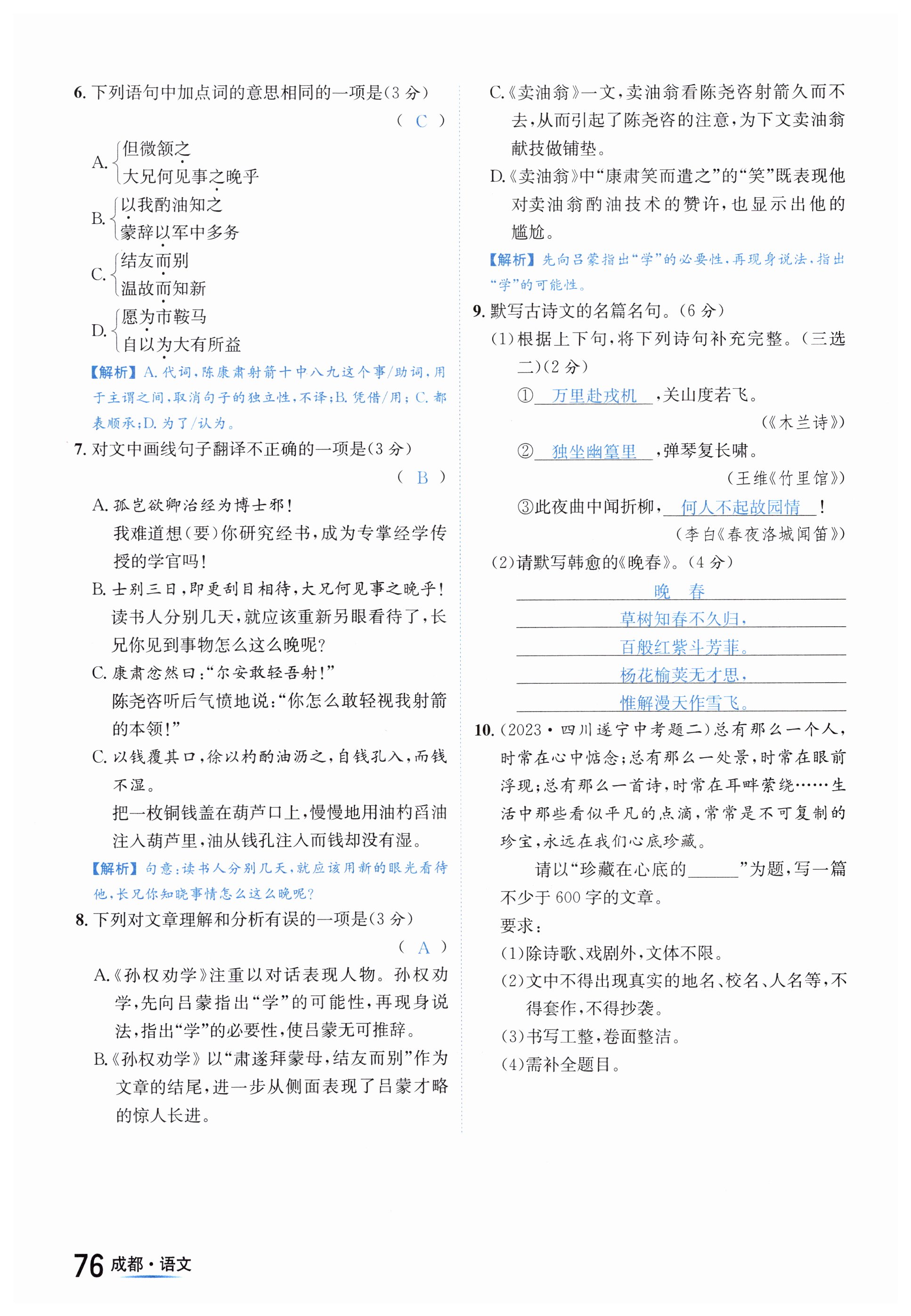 注:目前有些书本章节名称可能整理的还不是很完善,但都是按照顺序排列的,请同学们按照顺序仔细查找。练习册 2024年国华考试中考总动员语文成都专版 答案主要是用来给同学们做完题方便对答案用的,请勿直接抄袭。