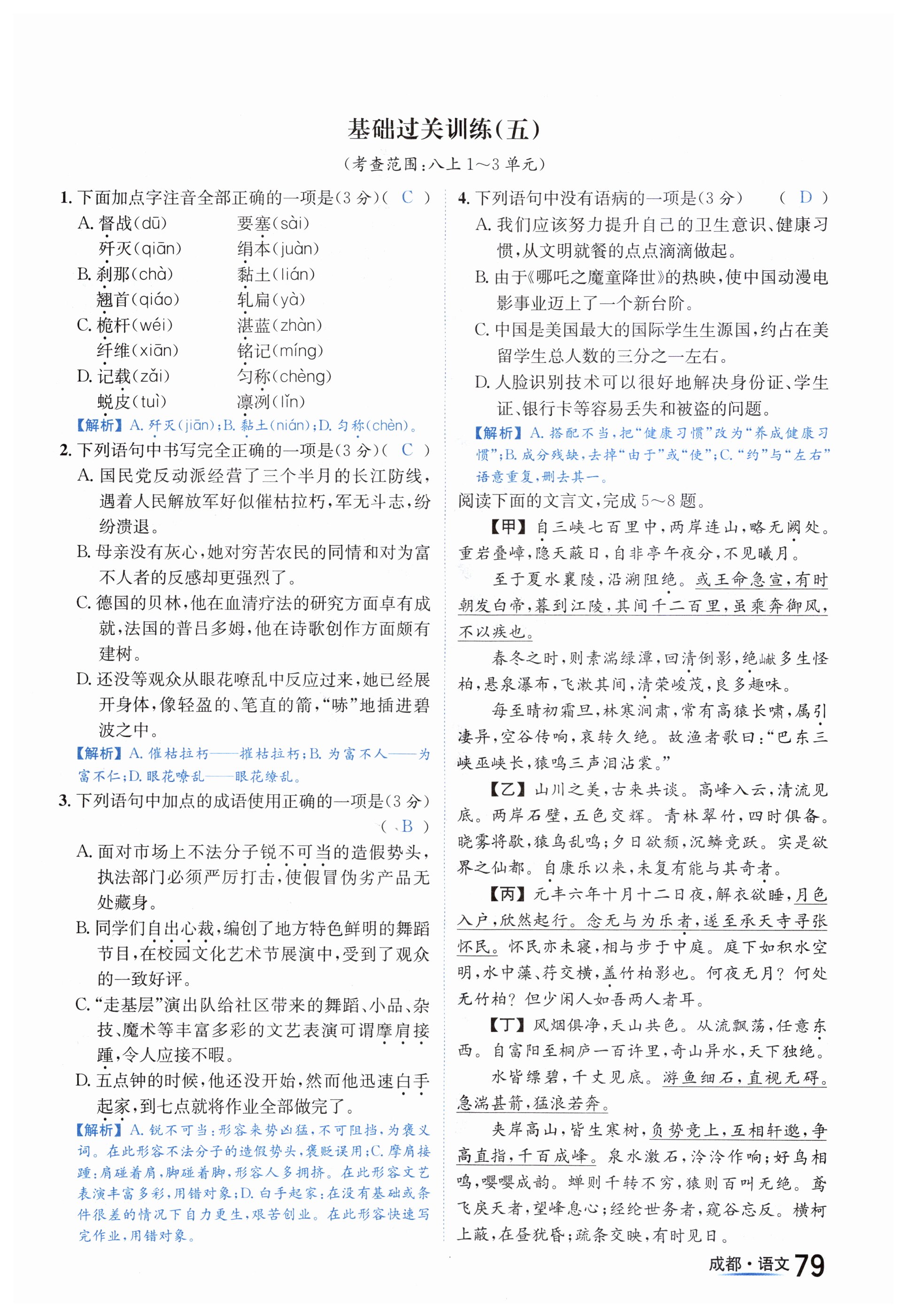 注:目前有些书本章节名称可能整理的还不是很完善,但都是按照顺序排列的,请同学们按照顺序仔细查找。练习册 2024年国华考试中考总动员语文成都专版 答案主要是用来给同学们做完题方便对答案用的,请勿直接抄袭。