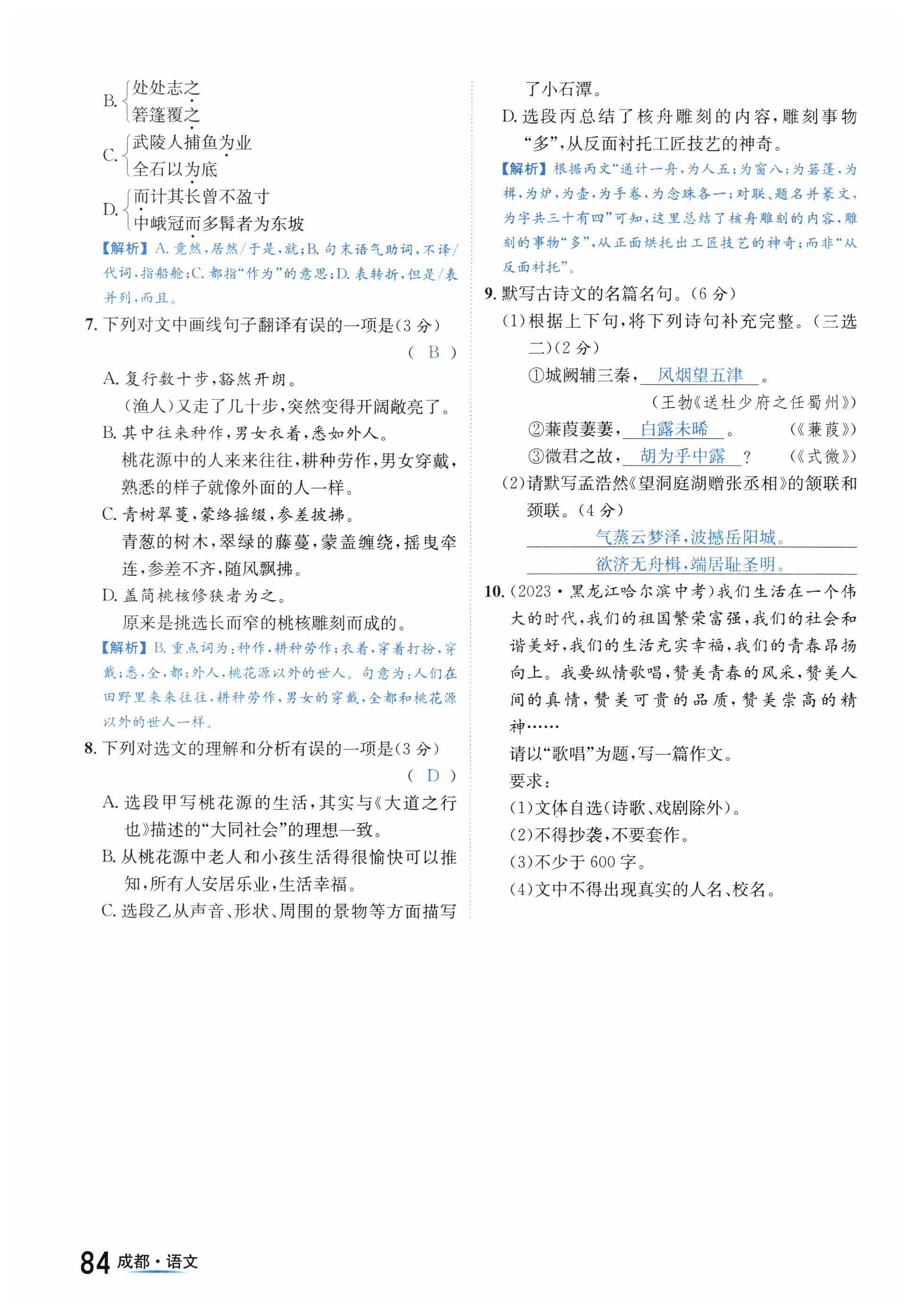 注:目前有些书本章节名称可能整理的还不是很完善,但都是按照顺序排列的,请同学们按照顺序仔细查找。练习册 2024年国华考试中考总动员语文成都专版 答案主要是用来给同学们做完题方便对答案用的,请勿直接抄袭。