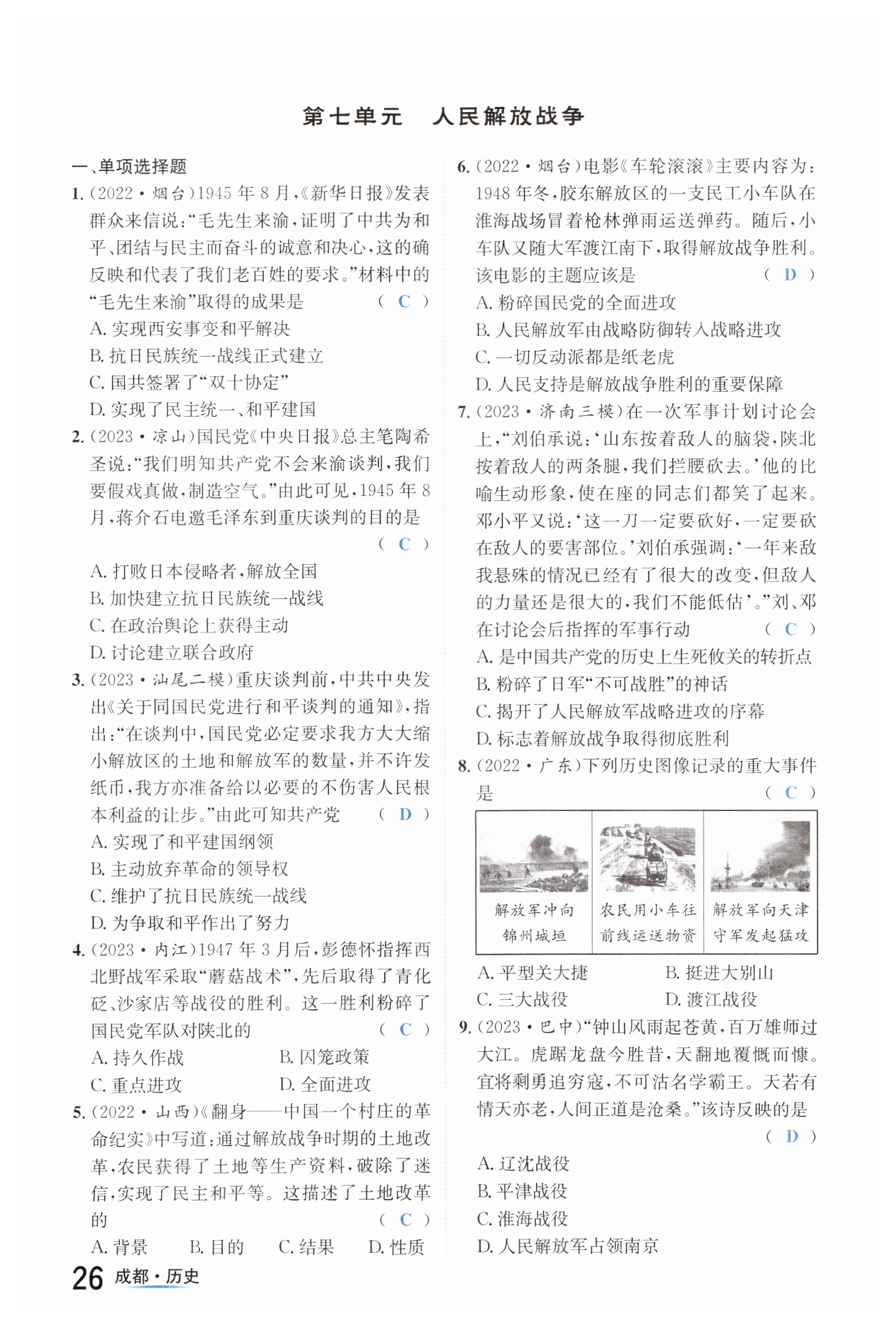 注:目前有些书本章节名称可能整理的还不是很完善,但都是按照顺序排列的,请同学们按照顺序仔细查找。练习册 2024年国华考试中考总动员历史成都专版 答案主要是用来给同学们做完题方便对答案用的,请勿直接抄袭。