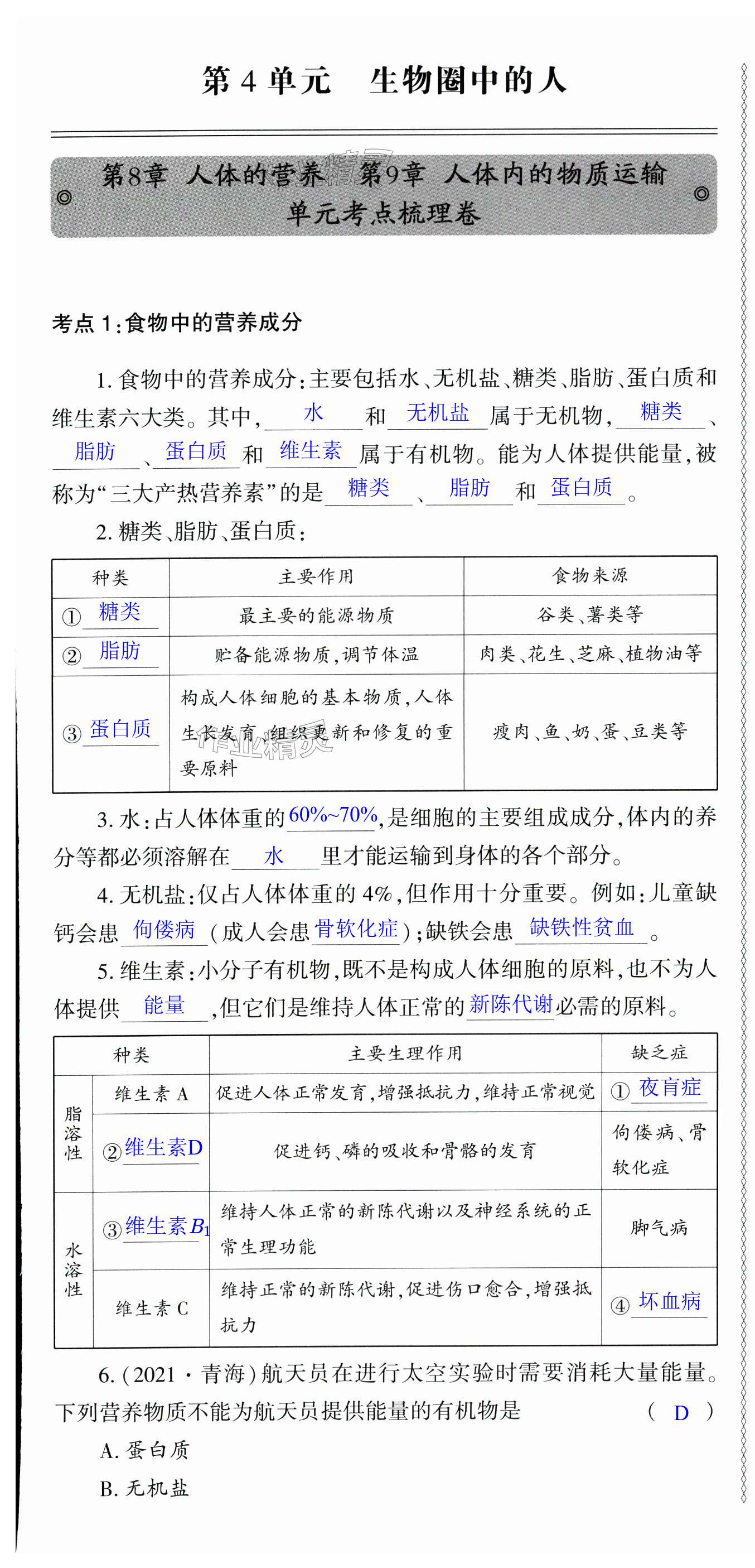 注:目前有些书本章节名称可能整理的还不是很完善,但都是按照顺序排列的,请同学们按照顺序仔细查找。练习册2024年节节高大象出版社七年级生物下册北师大版答案主要是用来给同学们做完题方便对答案用的,请勿直接抄袭。
