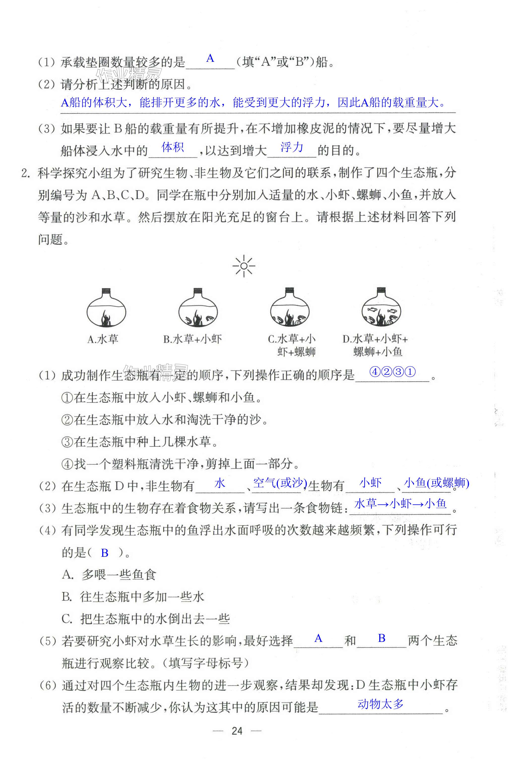 注:目前有些书本章节名称可能整理的还不是很完善,但都是按照顺序排列的,请同学们按照顺序仔细查找。练习册 2024年江苏好卷五年级科学下册教科版 答案主要是用来给同学们做完题方便对答案用的,请勿直接抄袭。