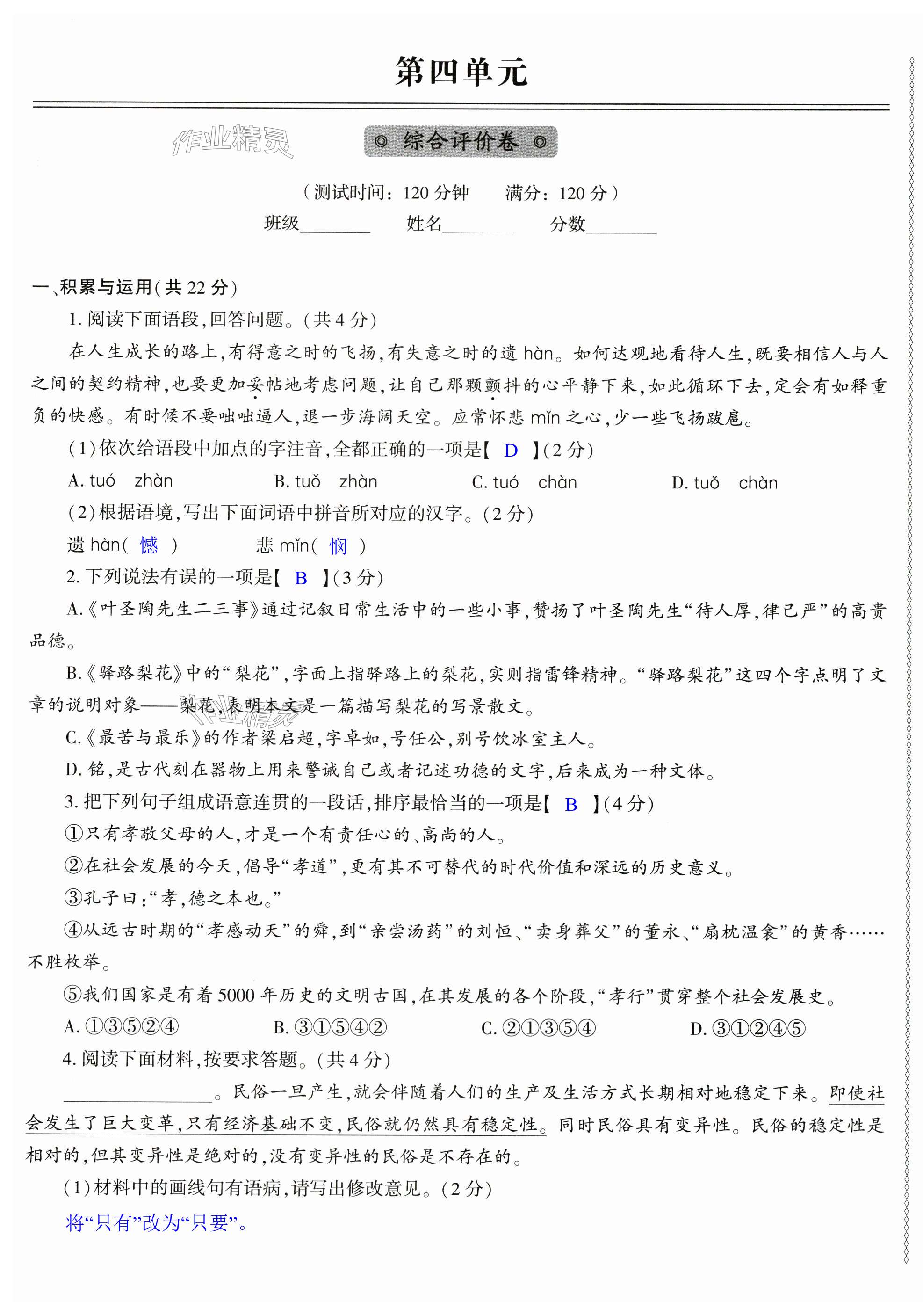 注:目前有些书本章节名称可能整理的还不是很完善,但都是按照顺序排列的,请同学们按照顺序仔细查找。练习册 2024年节节高大象出版社七年级语文下册人教版 答案主要是用来给同学们做完题方便对答案用的,请勿直接抄袭。