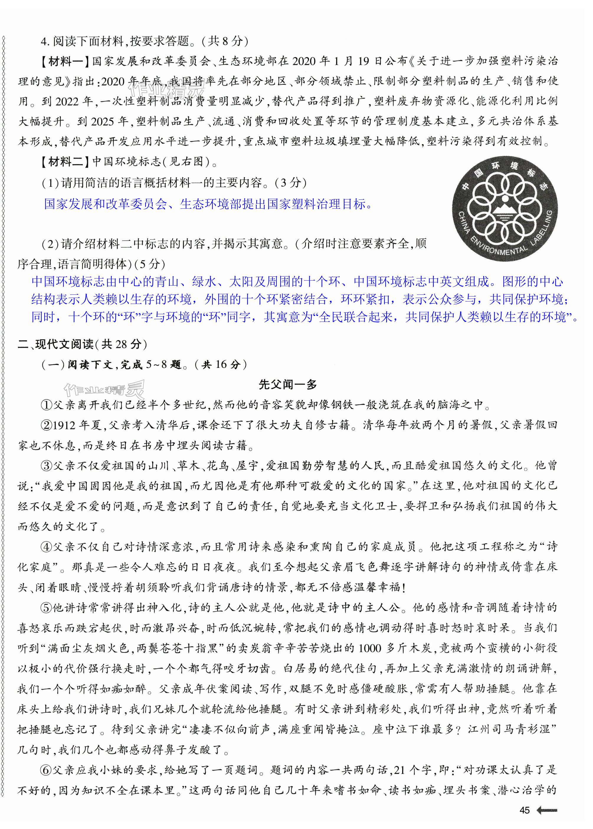 注:目前有些书本章节名称可能整理的还不是很完善,但都是按照顺序排列的,请同学们按照顺序仔细查找。练习册 2024年节节高大象出版社七年级语文下册人教版 答案主要是用来给同学们做完题方便对答案用的,请勿直接抄袭。