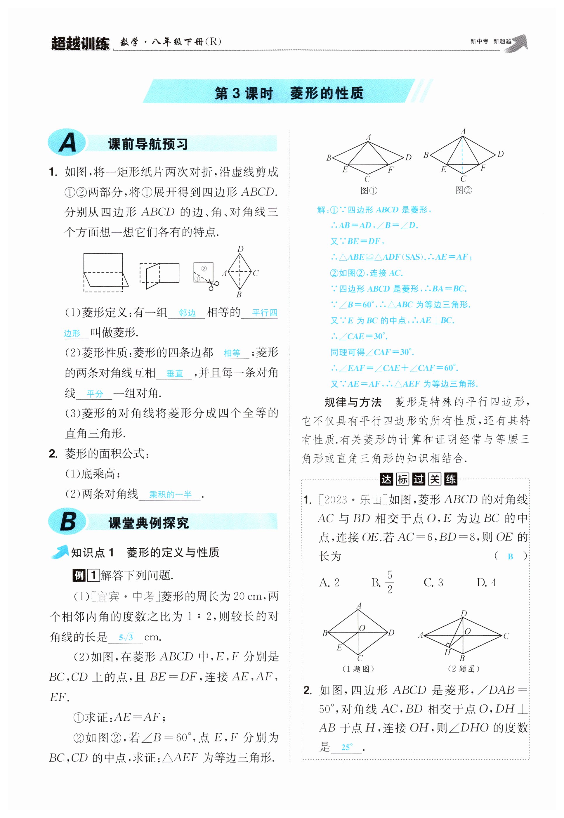 注:目前有些书本章节名称可能整理的还不是很完善,但都是按照顺序排列的,请同学们按照顺序仔细查找。练习册 2024年超越训练八年级数学下册人教版 答案主要是用来给同学们做完题方便对答案用的,请勿直接抄袭。