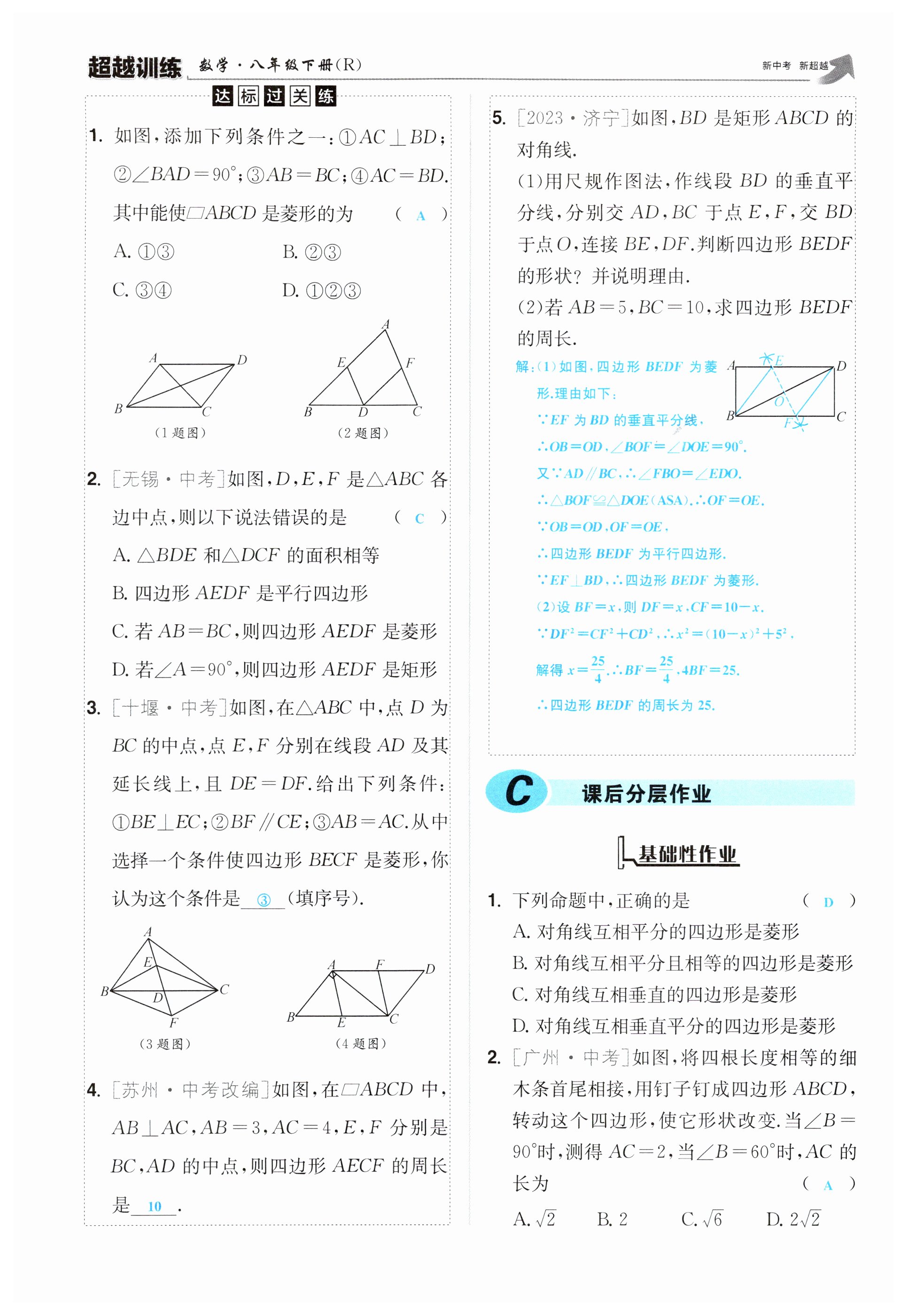 注:目前有些书本章节名称可能整理的还不是很完善,但都是按照顺序排列的,请同学们按照顺序仔细查找。练习册 2024年超越训练八年级数学下册人教版 答案主要是用来给同学们做完题方便对答案用的,请勿直接抄袭。