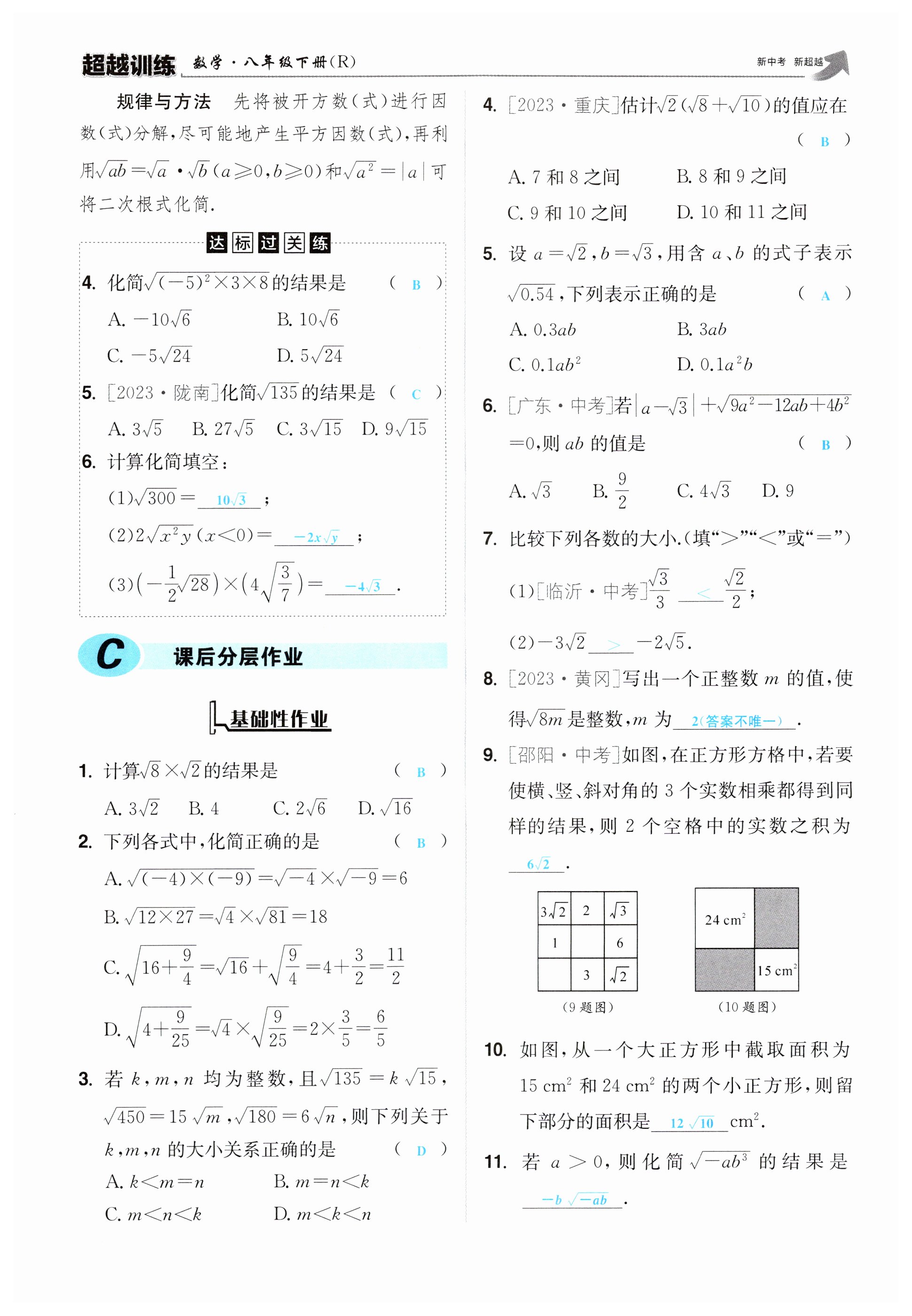 注:目前有些书本章节名称可能整理的还不是很完善,但都是按照顺序排列的,请同学们按照顺序仔细查找。练习册 2024年超越训练八年级数学下册人教版 答案主要是用来给同学们做完题方便对答案用的,请勿直接抄袭。