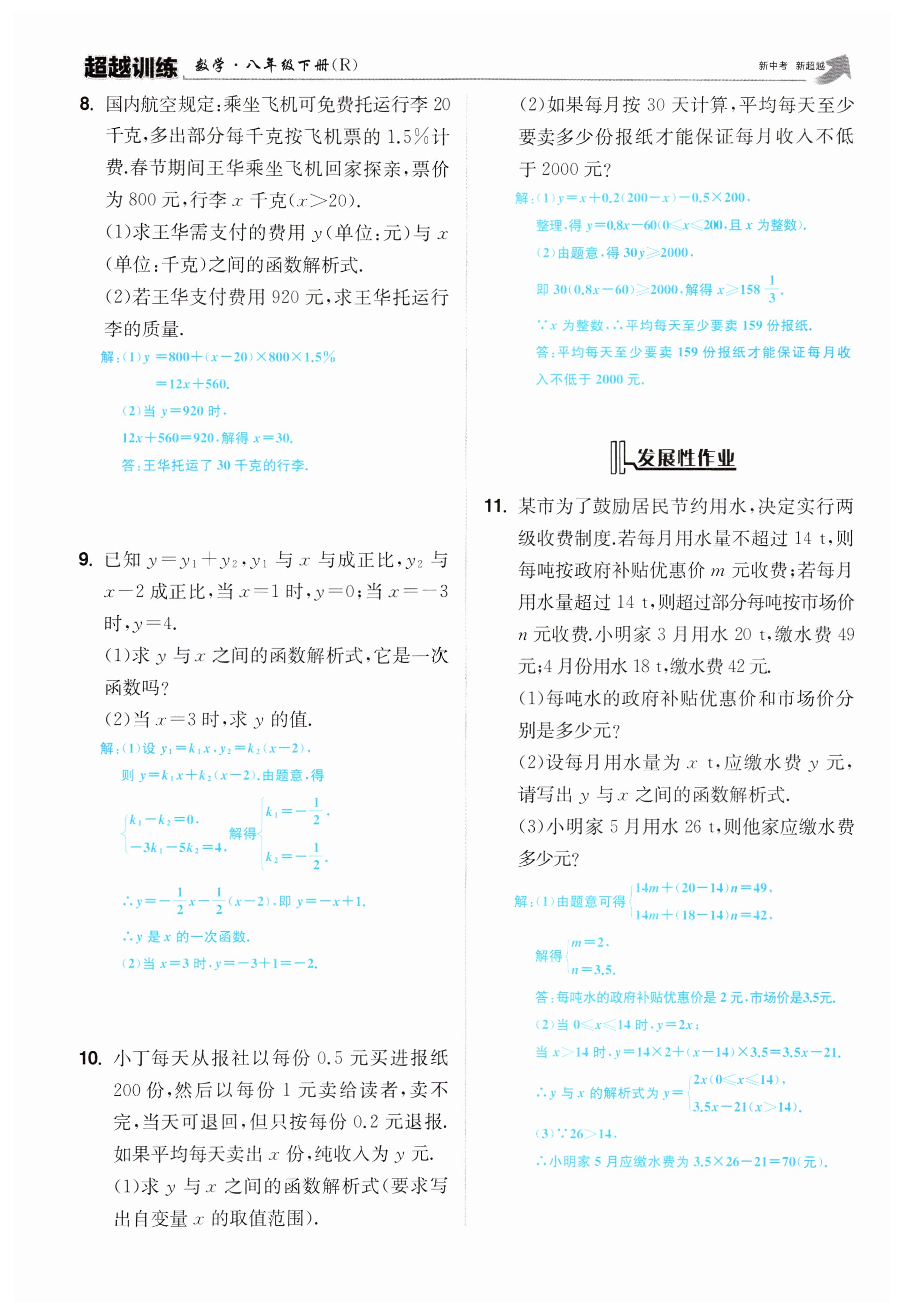 注:目前有些书本章节名称可能整理的还不是很完善,但都是按照顺序排列的,请同学们按照顺序仔细查找。练习册 2024年超越训练八年级数学下册人教版 答案主要是用来给同学们做完题方便对答案用的,请勿直接抄袭。