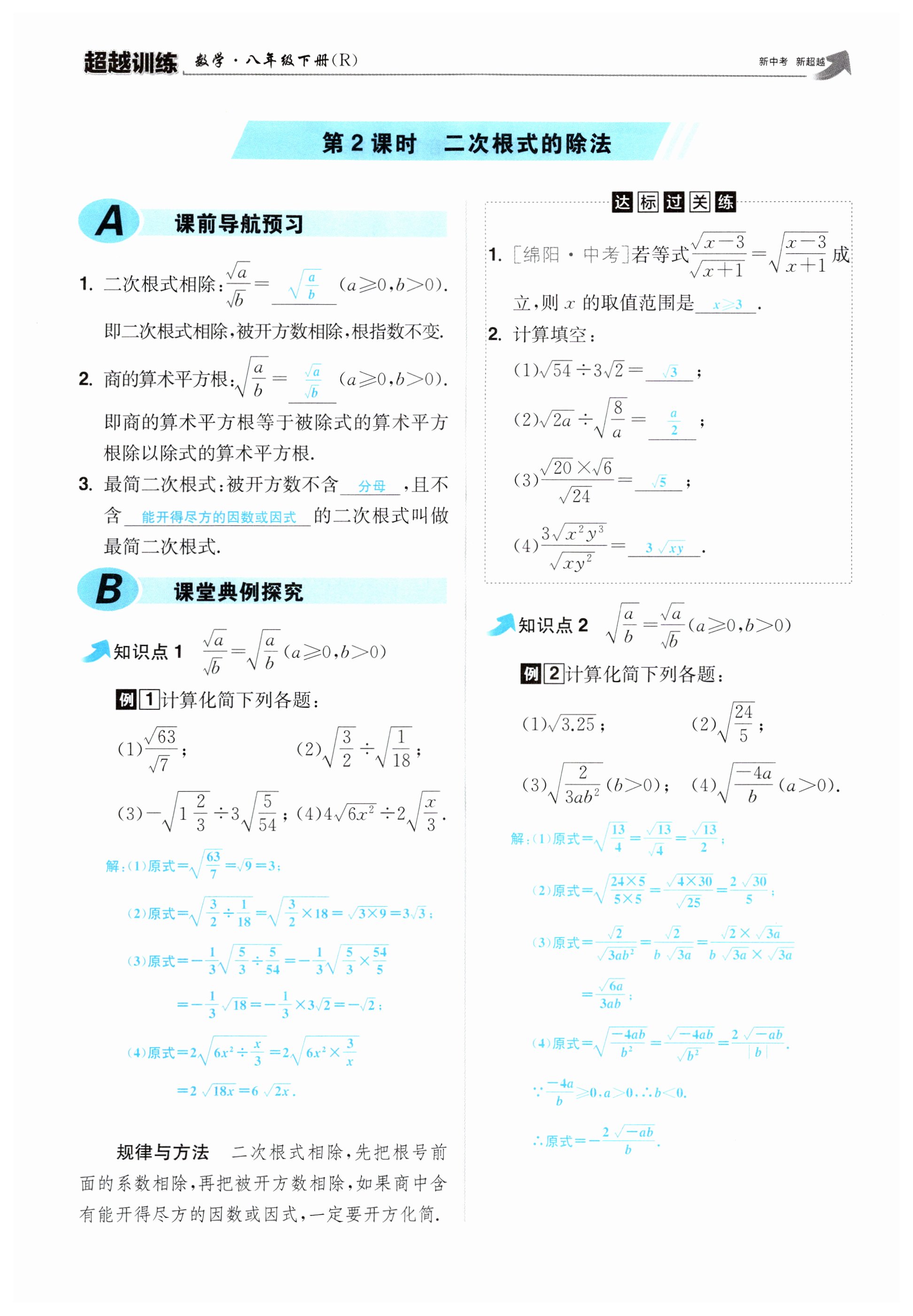 注:目前有些书本章节名称可能整理的还不是很完善,但都是按照顺序排列的,请同学们按照顺序仔细查找。练习册 2024年超越训练八年级数学下册人教版 答案主要是用来给同学们做完题方便对答案用的,请勿直接抄袭。