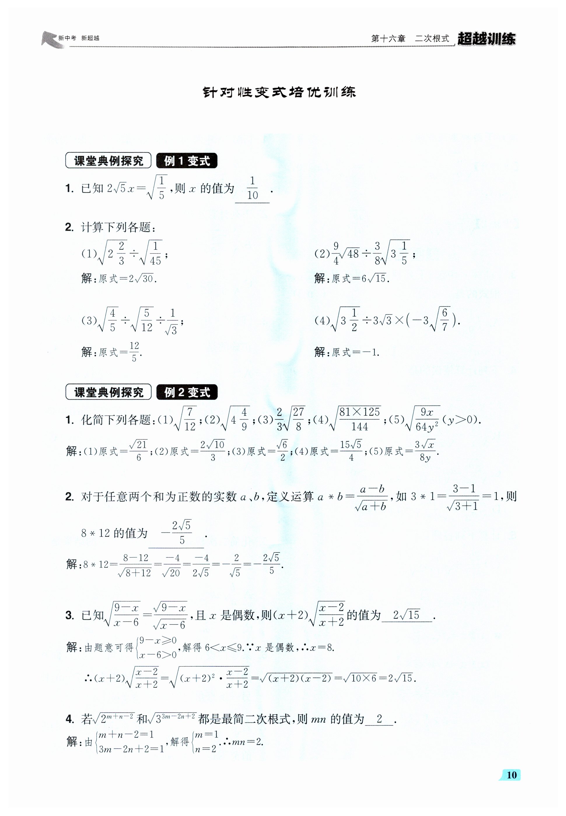 注:目前有些书本章节名称可能整理的还不是很完善,但都是按照顺序排列的,请同学们按照顺序仔细查找。练习册 2024年超越训练八年级数学下册人教版 答案主要是用来给同学们做完题方便对答案用的,请勿直接抄袭。