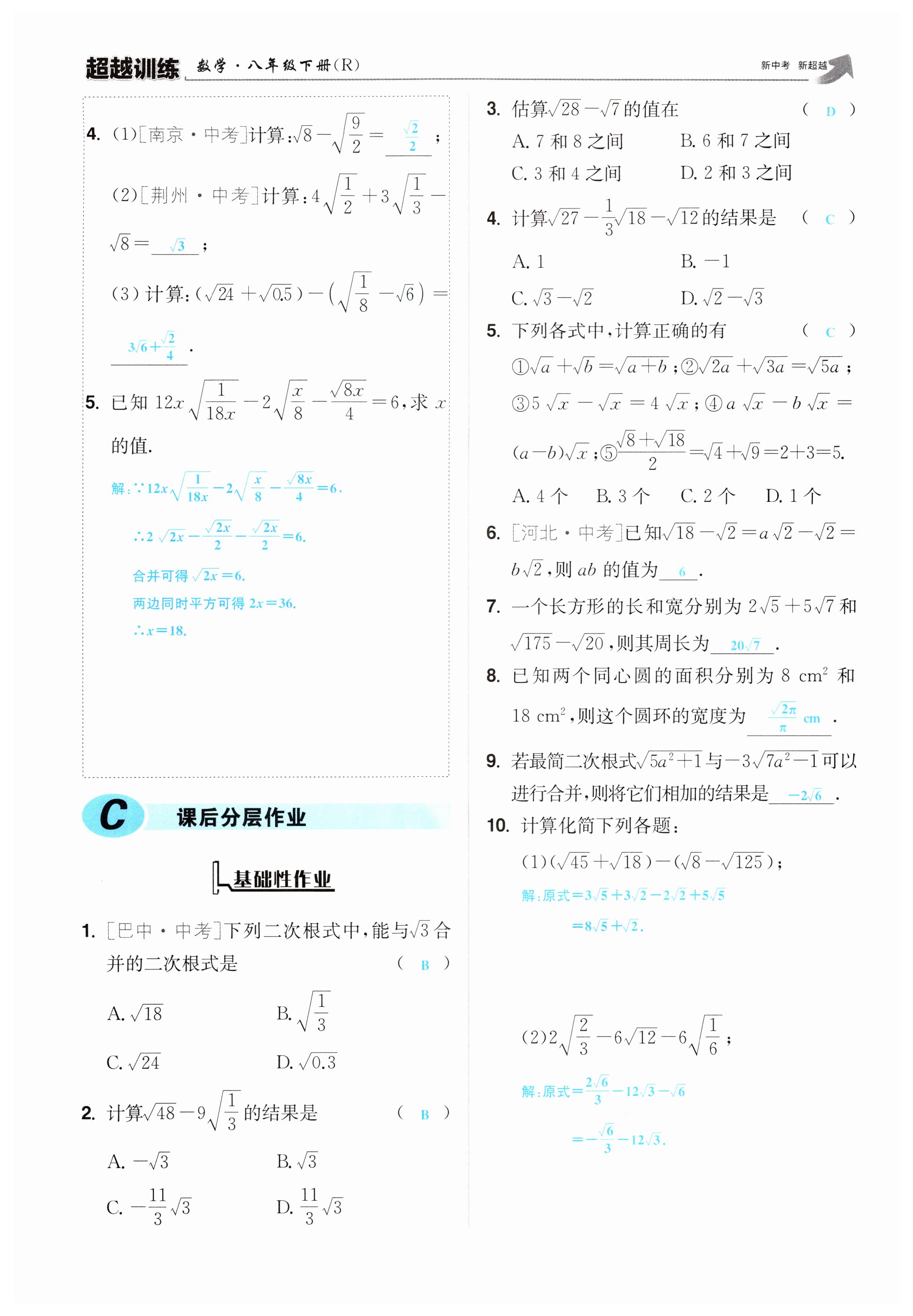 注:目前有些书本章节名称可能整理的还不是很完善,但都是按照顺序排列的,请同学们按照顺序仔细查找。练习册 2024年超越训练八年级数学下册人教版 答案主要是用来给同学们做完题方便对答案用的,请勿直接抄袭。