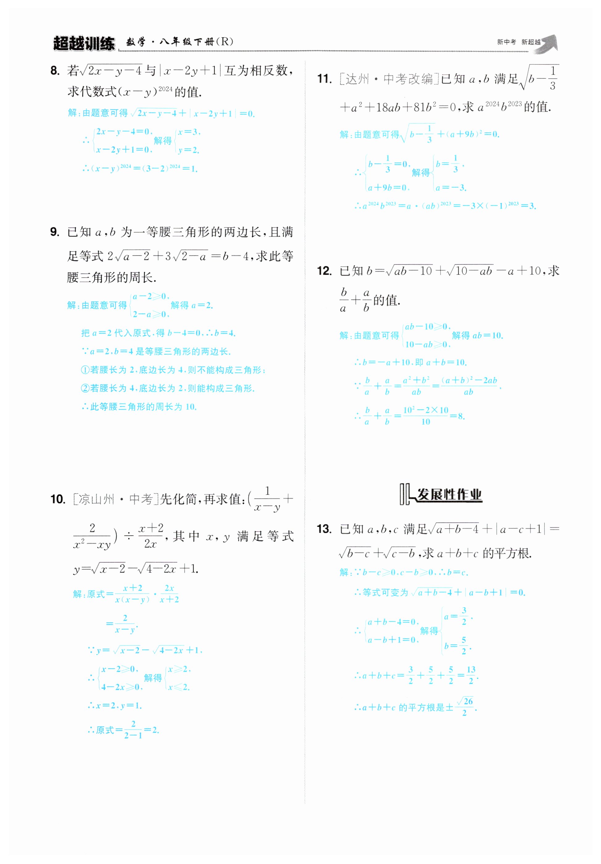 注:目前有些书本章节名称可能整理的还不是很完善,但都是按照顺序排列的,请同学们按照顺序仔细查找。练习册 2024年超越训练八年级数学下册人教版 答案主要是用来给同学们做完题方便对答案用的,请勿直接抄袭。
